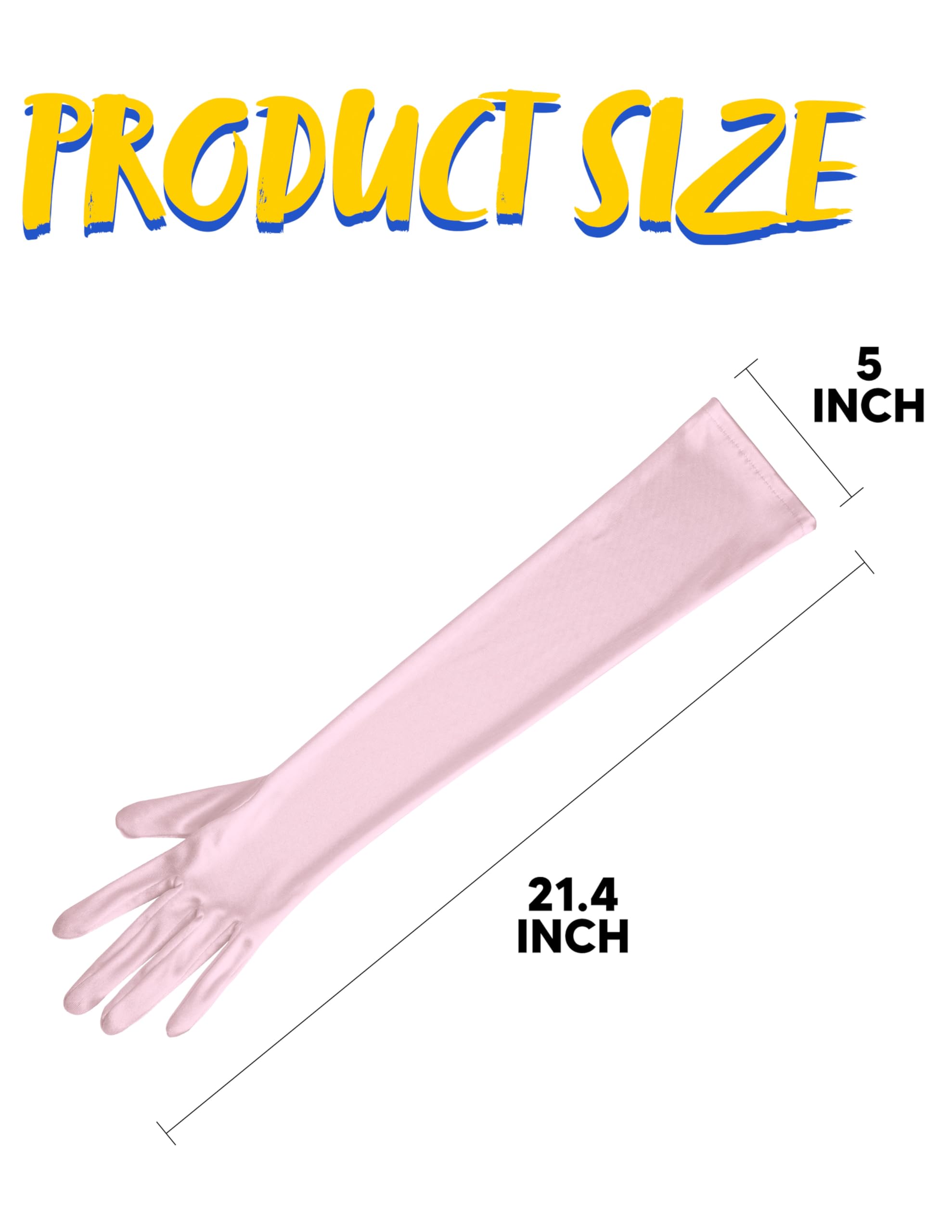 Size: Our opera satin gloves for women are approximately flat length is 21.4", width is 5".