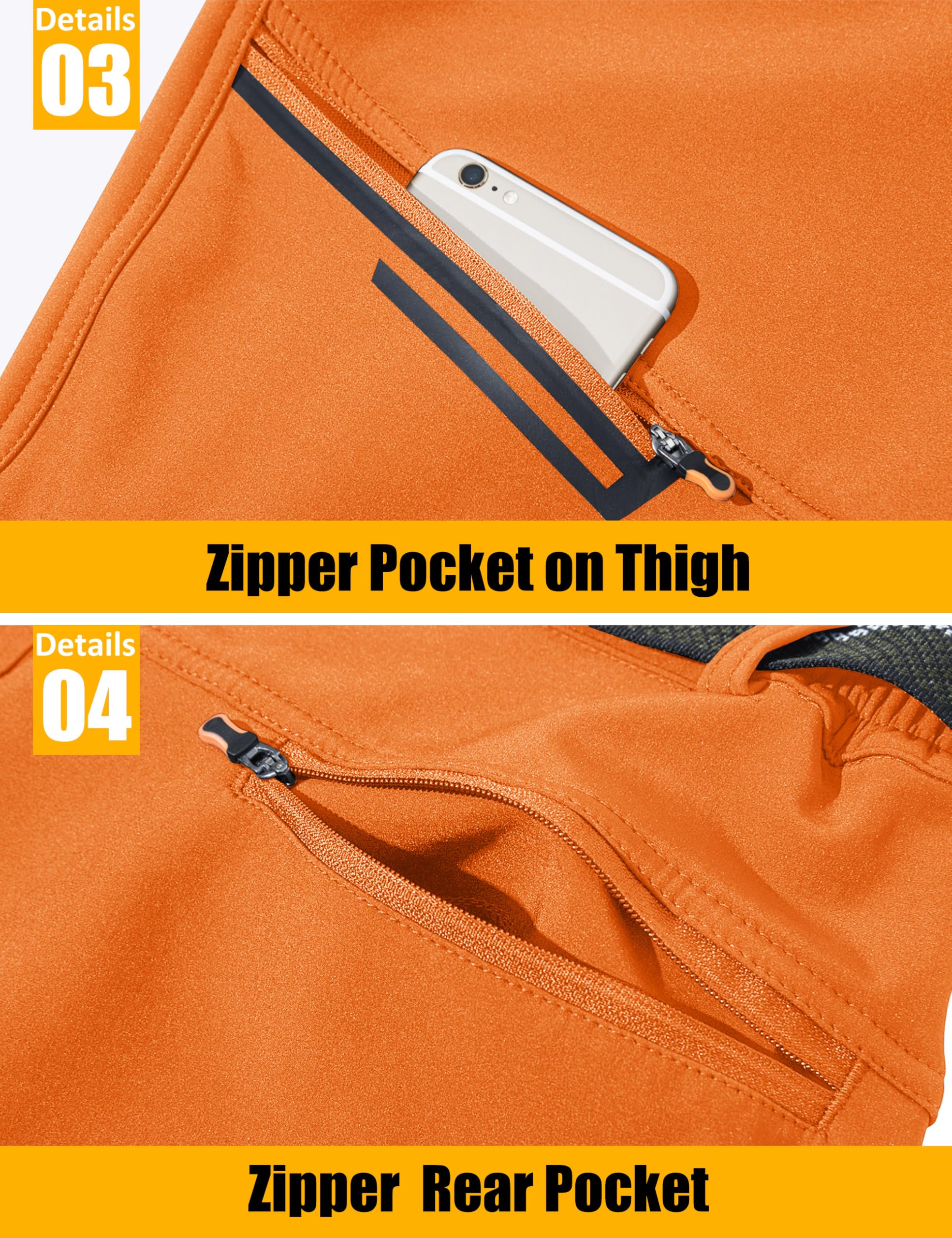 4 Zipper Pockets: 2 Zipper Hand Pokets, 1 Zipper pocket on right thigh and 1 Zipper Rear Pocket, Keeping Your Essentials Securely