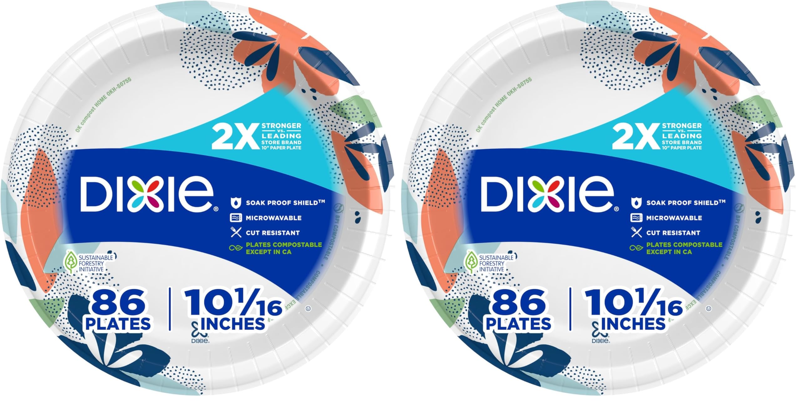 Dixie® Disposable Paper Plates make everyday mealtime stress-free and enjoyable. With our 10 inch paper plates, you can serve all your favorite dishes without worrying about cleaning up messy dishes afterwards. Our Soak Proof Shield™ prevents saucy, soupy, and greasy foods from seeping through the plate, so you can rest assured that your plate will stay dry and intact. Dixie® Paper Plates are durable, microwave-safe, cut-resistant, and designed to hold foods like grilled chicken, burgers, or steak. With 86 plates in each bulk paper plates pack, Dixie® plates are premium quality and convenient for all your dining needs, letting you focus on the moment with peace of mind. Enjoy meal time with Dixie® Paper Plates 10 inch today!