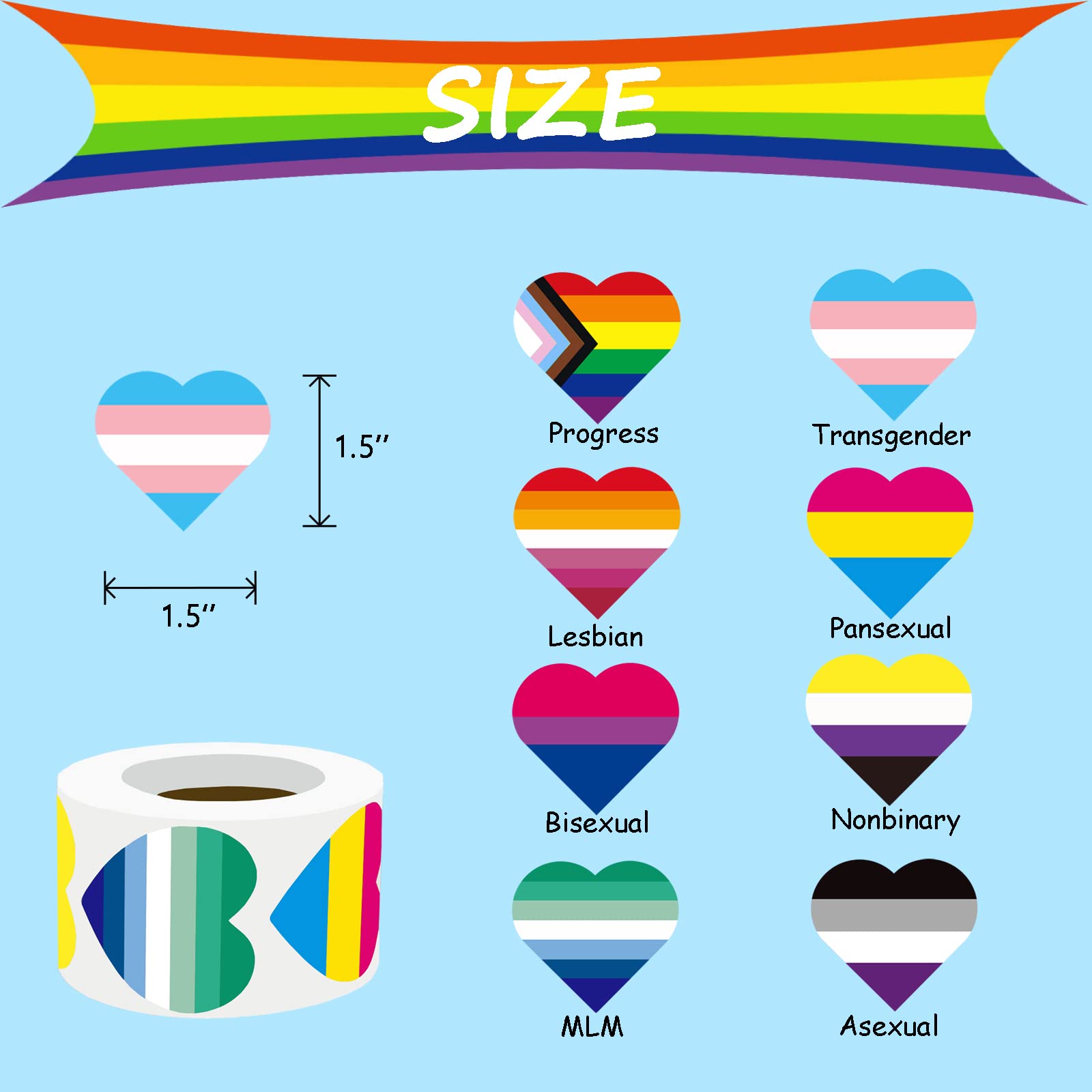 Celebrate PRIDE: Show your pride with our 2 rolls about 1000 pieces LGBTQ flag stickers. Featuring vibrant designs, these 1.5 x 1.5 inch heart Pride stickers are great for expressing your identity and supporting equality