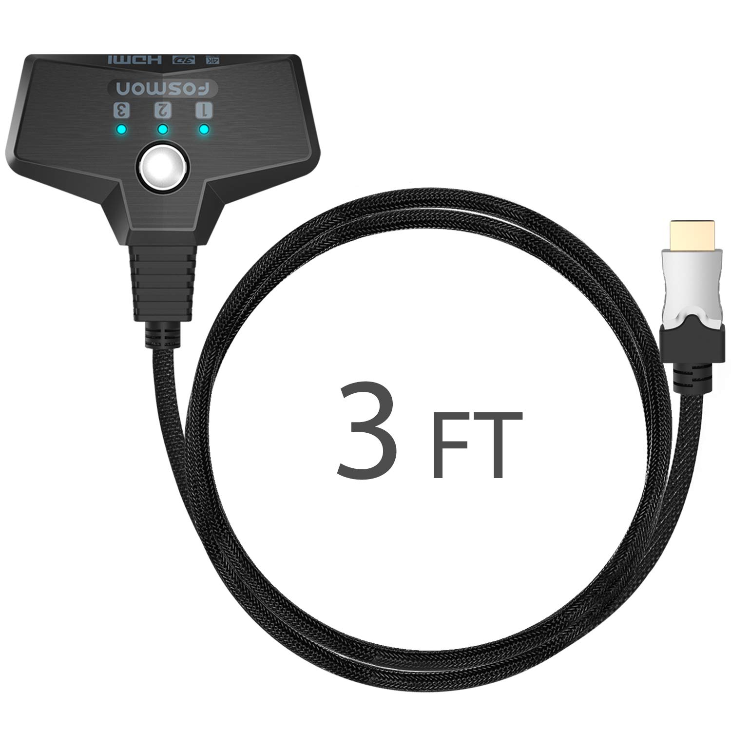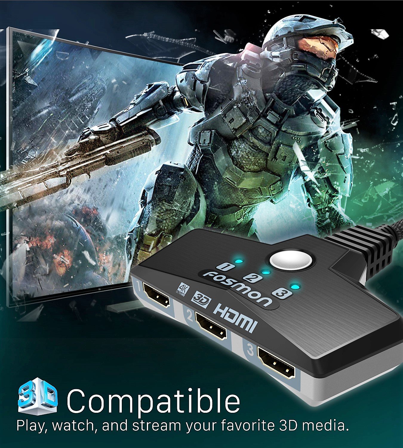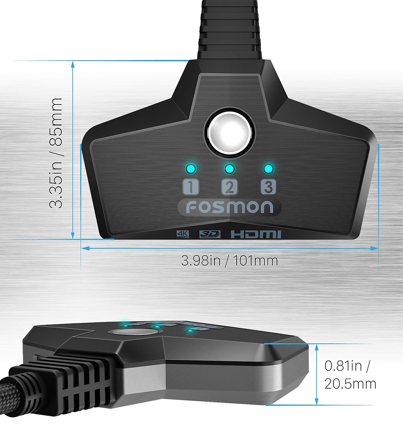 [CONNECT UP TO 3 HDMI DEVICES] Fosmon's HDMI switch allows you to seamlessly switch between three HDMI devices from one single HDMI port. Be in full control of your HDMI devices and have less headaches.