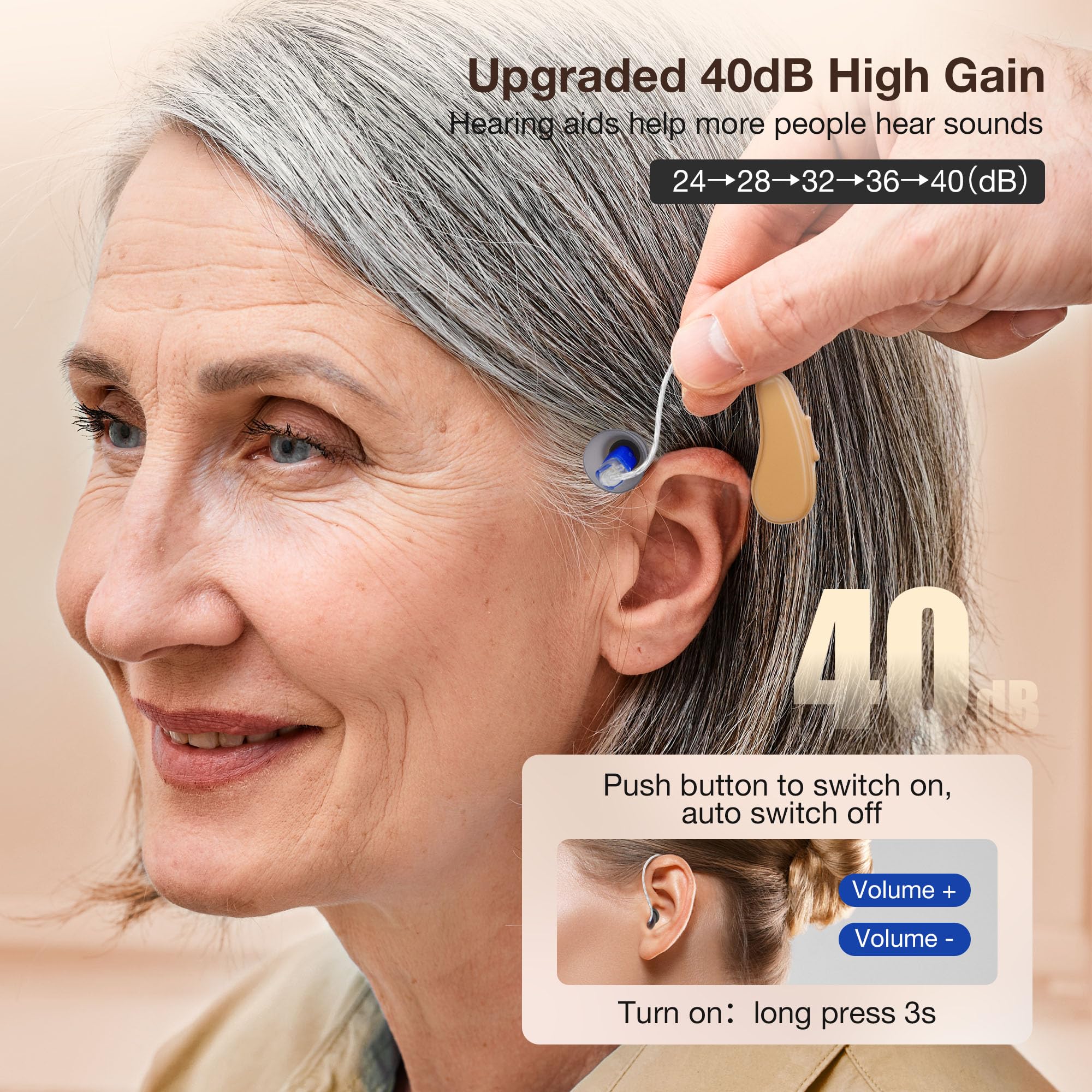 Compact and Nearly Invisible : The shape of the hearing aid is designed to be small and delicate, the colour is close to the skin tone and can be well hidden behind the ear, with silicone earplugs, soft and comfortable; and the volume is light and small, so that wearing it for a long period of time will not cause any pressure on the ear, which is both good-looking and easy to use, so who wouldn't love it
