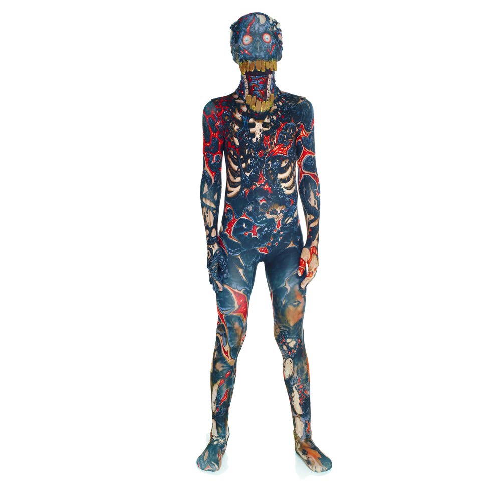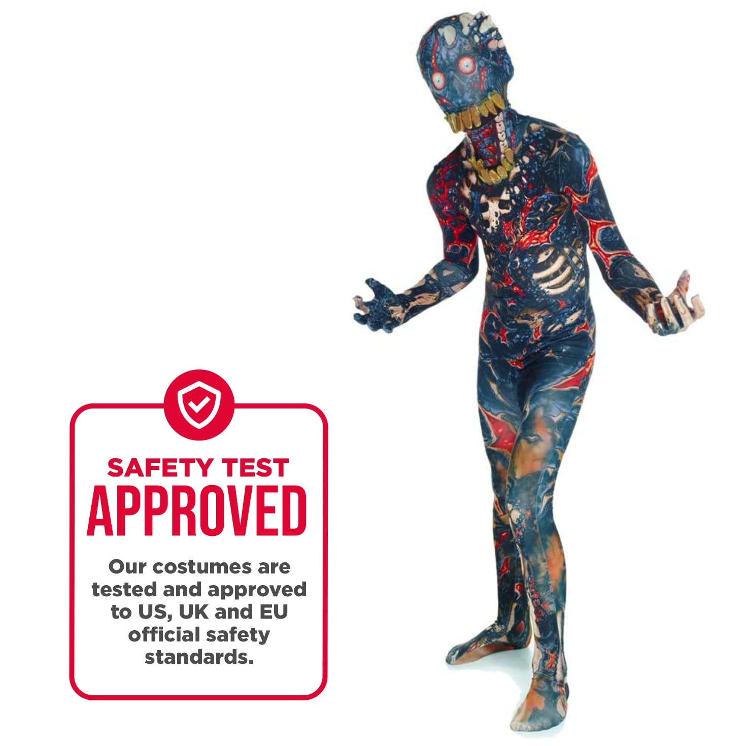 HIGH QUALITY BURNT ZOMBIE JAW DROPPER COSTUME: All our Kids Morphsuits are CE tested, and have a quick release velcro hood for easy removel. Our high quality material means a 4-way stretch, with a strong zip and re-enforced stitching at stress points to make sure this Burnt Zombie Jaw Dropper Kids Monster Morphsuit lasts more than one wear. Hand wash in cold water, air dry and you're good to go again