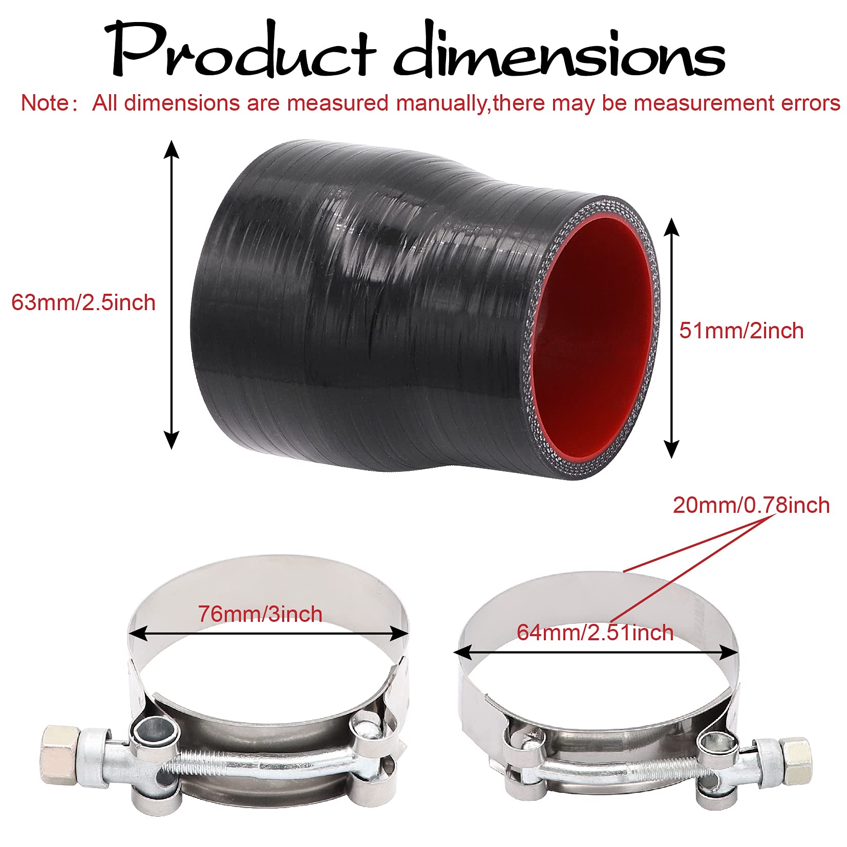 High Quality Coupler:4-ply Polyester Reinforced.Wall thickness 5mm.Length 76mm(3").ID2"-2.5"
