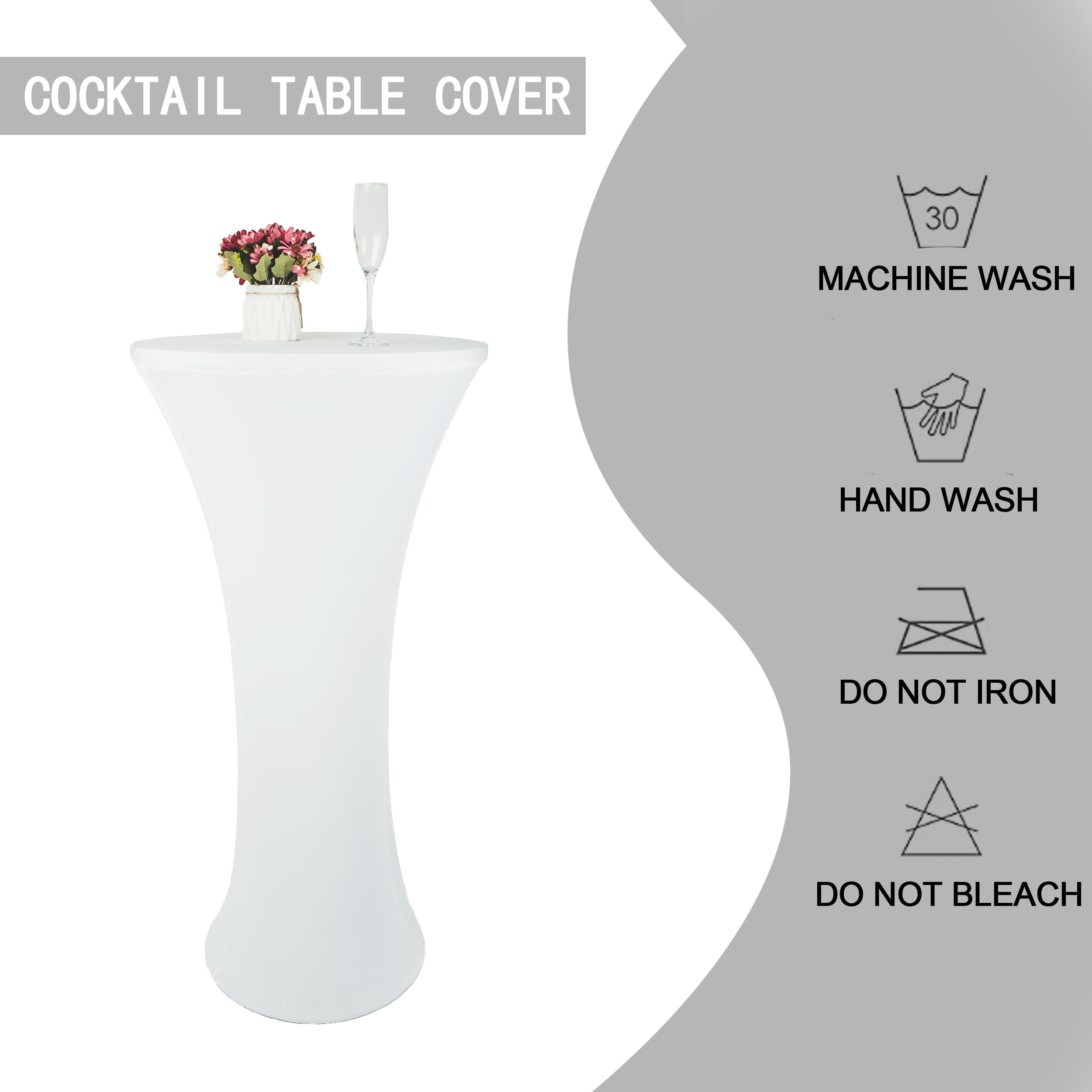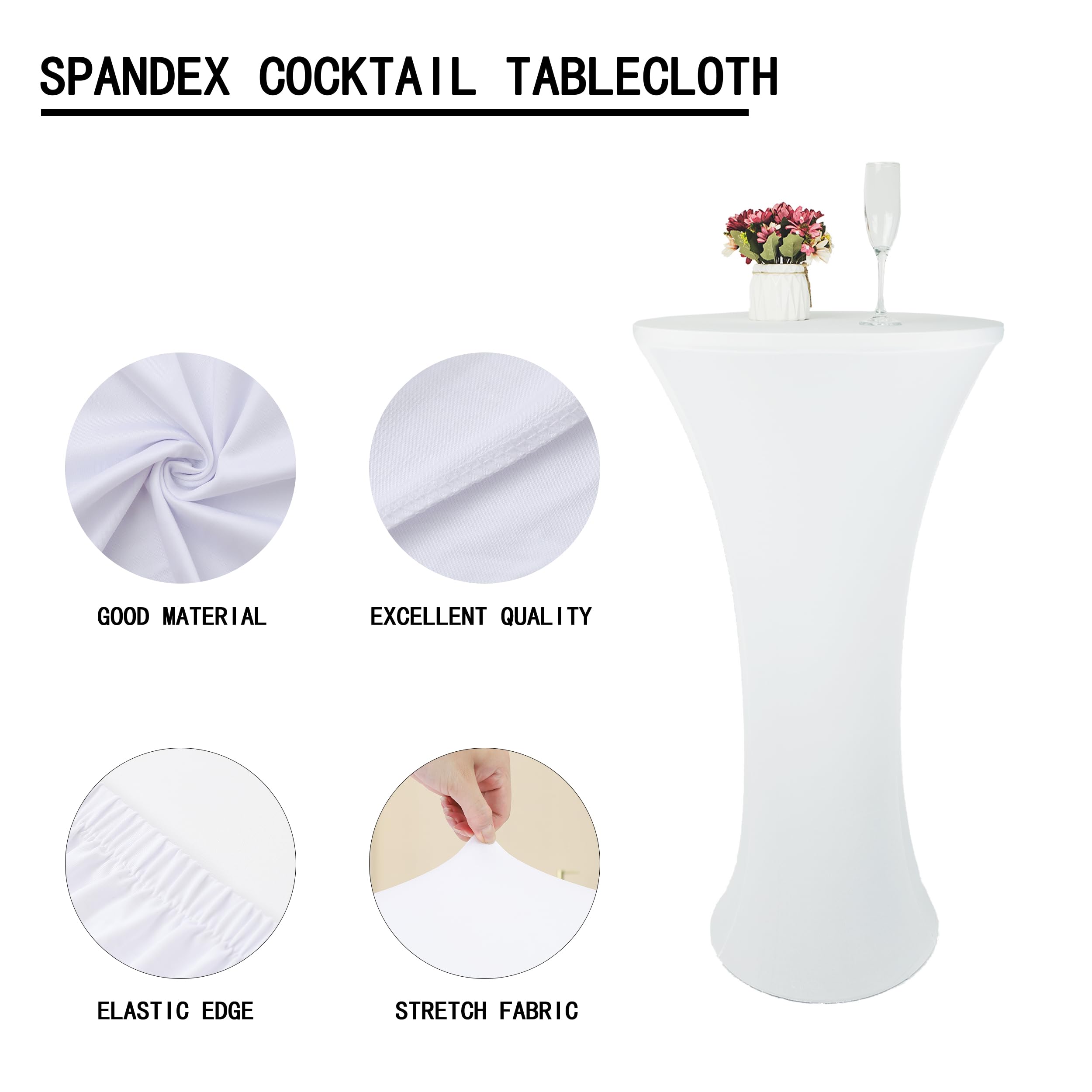 Features:Our stretch cocktail table cover is perfect fit for your cocktail round table, highboy round table and other round bottom table.Very easy to put on and take off.Not easy movement or sliding, no worry about blowing off. It can make your table show a neat appearance.Your ordinary plastic metal table can easily be turned into a very chic piece of furniture.