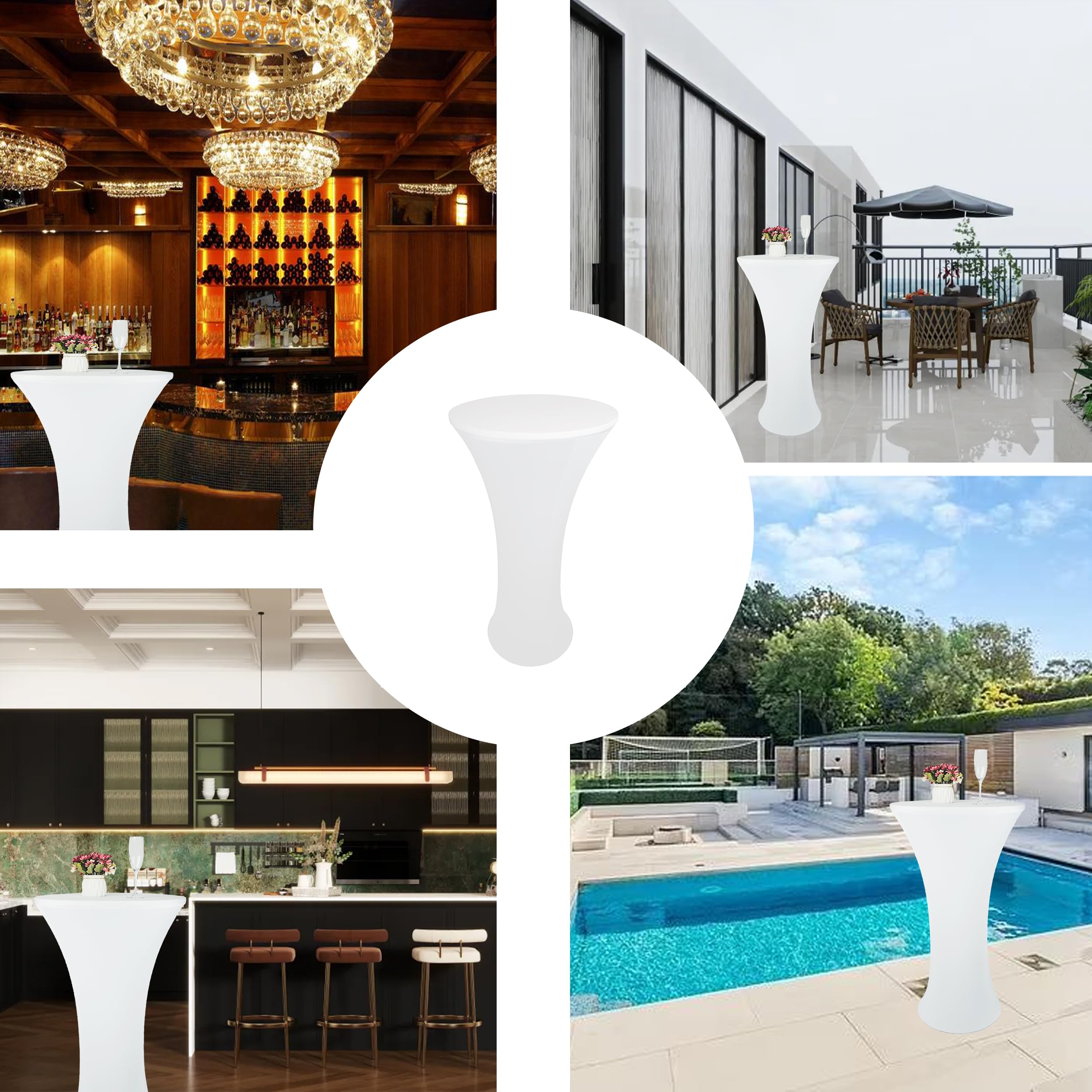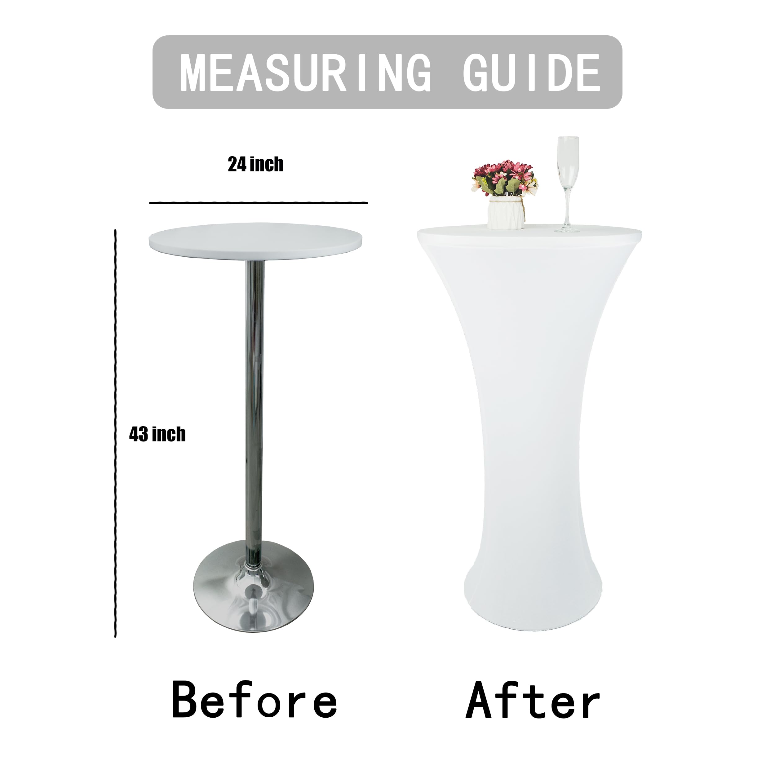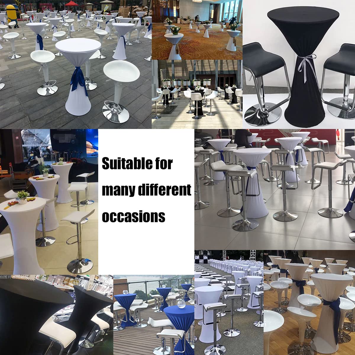 Excellent design:This table cover is suitable for round tables of 24 inches diameter and 42 inches height.The bottom of this cocktail tablecloth is closed with elastic elastic band, which will not fall off and can cover the entire cocktail table perfectly .Can be used on many different styles of cocktail round table,highboy round table and any other round bottom table.Looks very professional when installed.