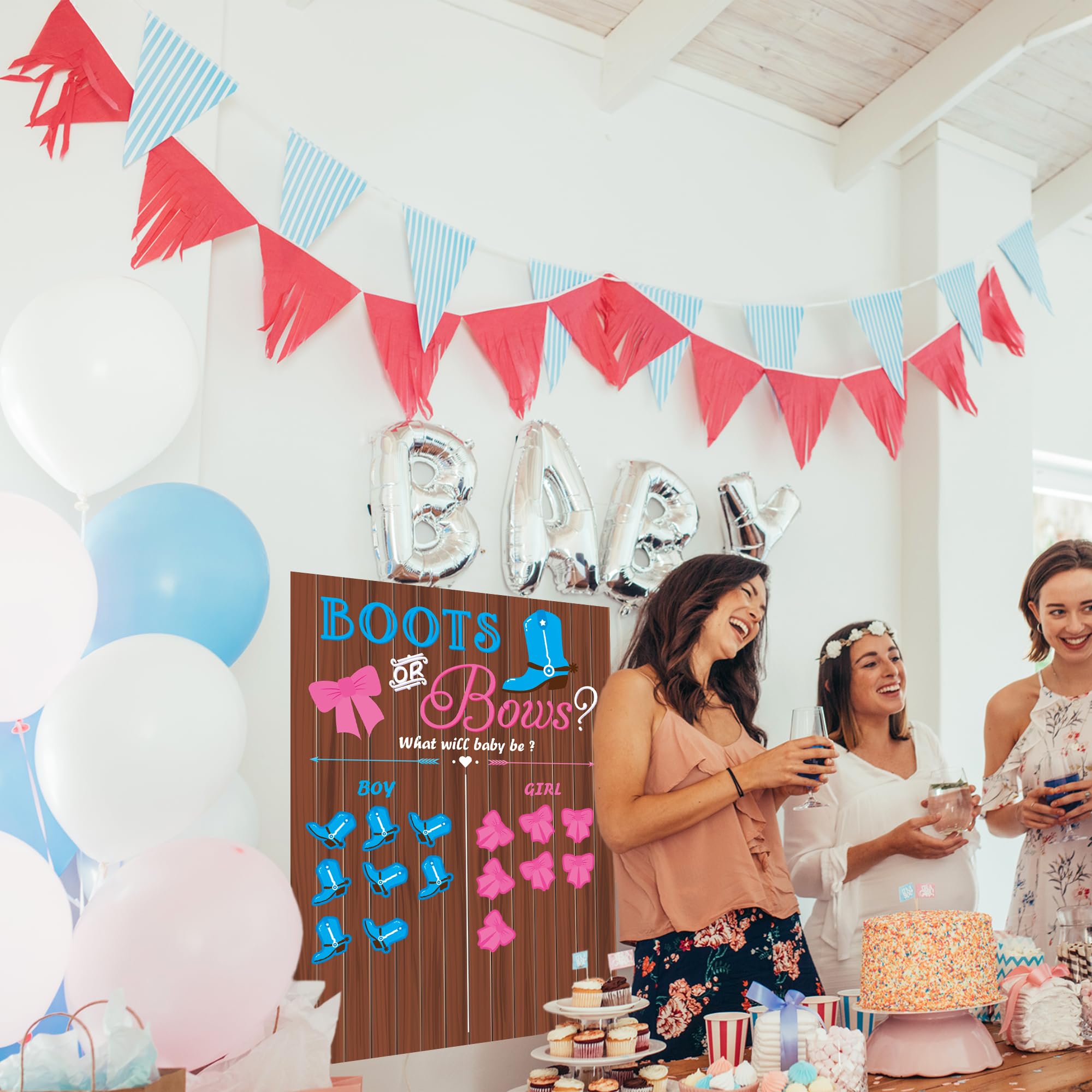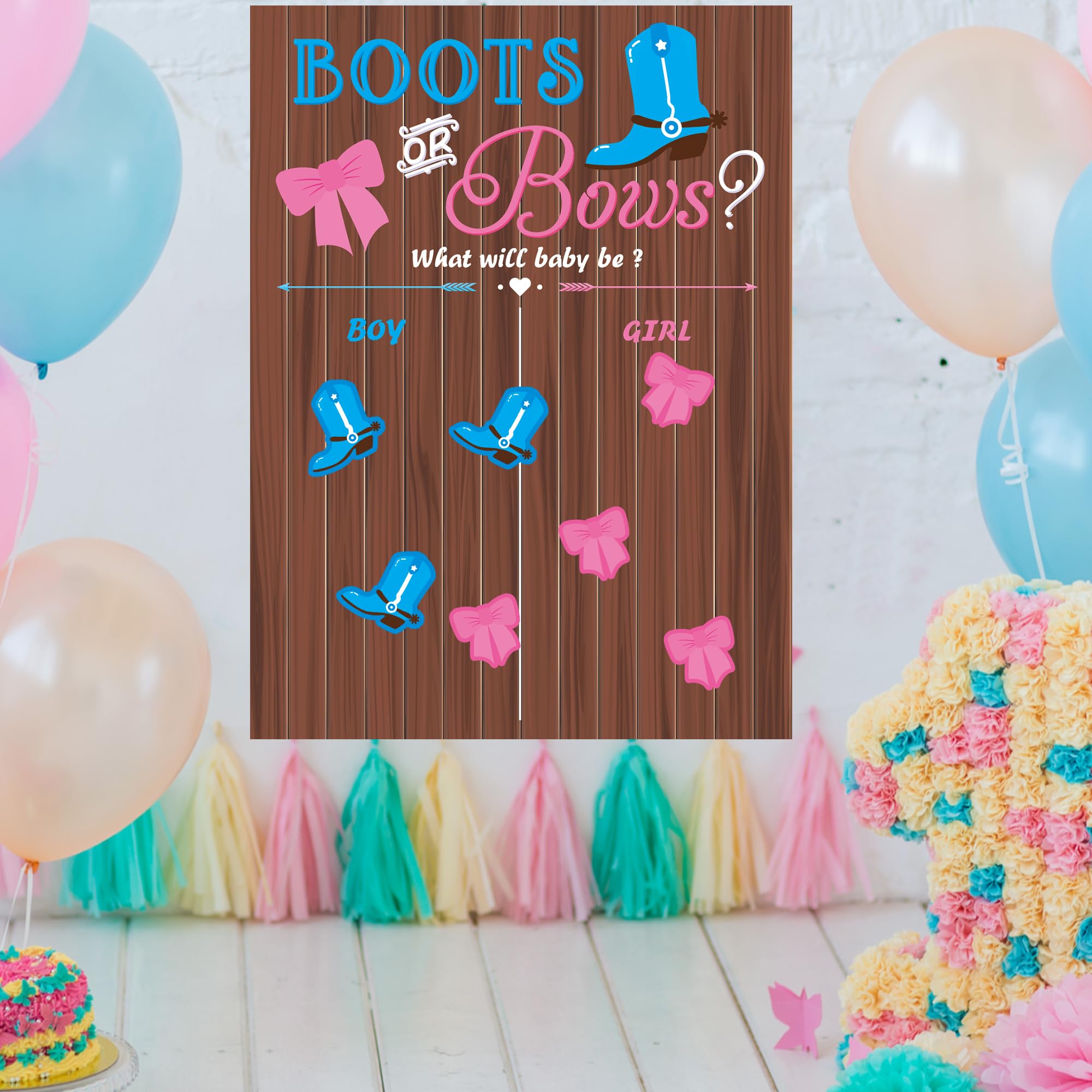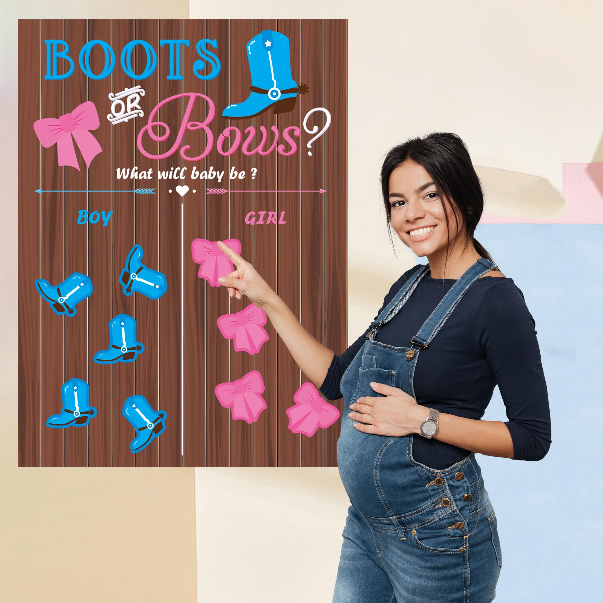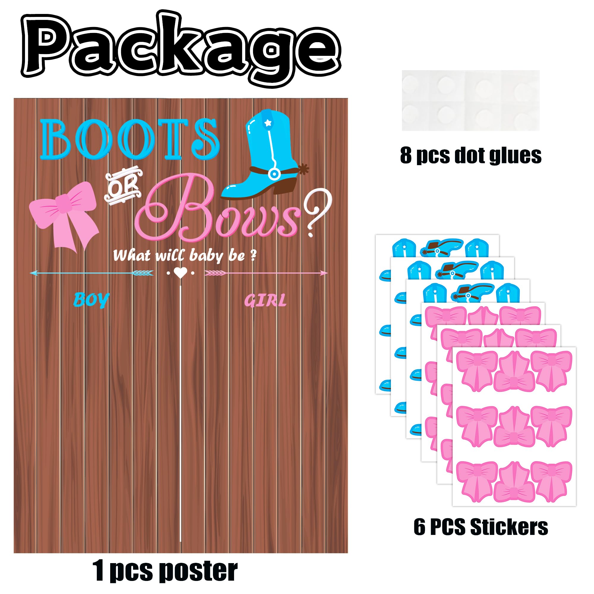 EASY TO USE AND FUNNY: He or she gender reveal decorations with the help of glue -pointed in package, gender reveal game poster can be easily installed on wall or other smooth surface in notable place for game preparation. Gender reveal stickers in the style of boots and bows would be attached to the voting place of poster for your voting choice. In Such case, it’s easy to calculate statistics and get results! A simple and funny gender reveal games for guests and you;