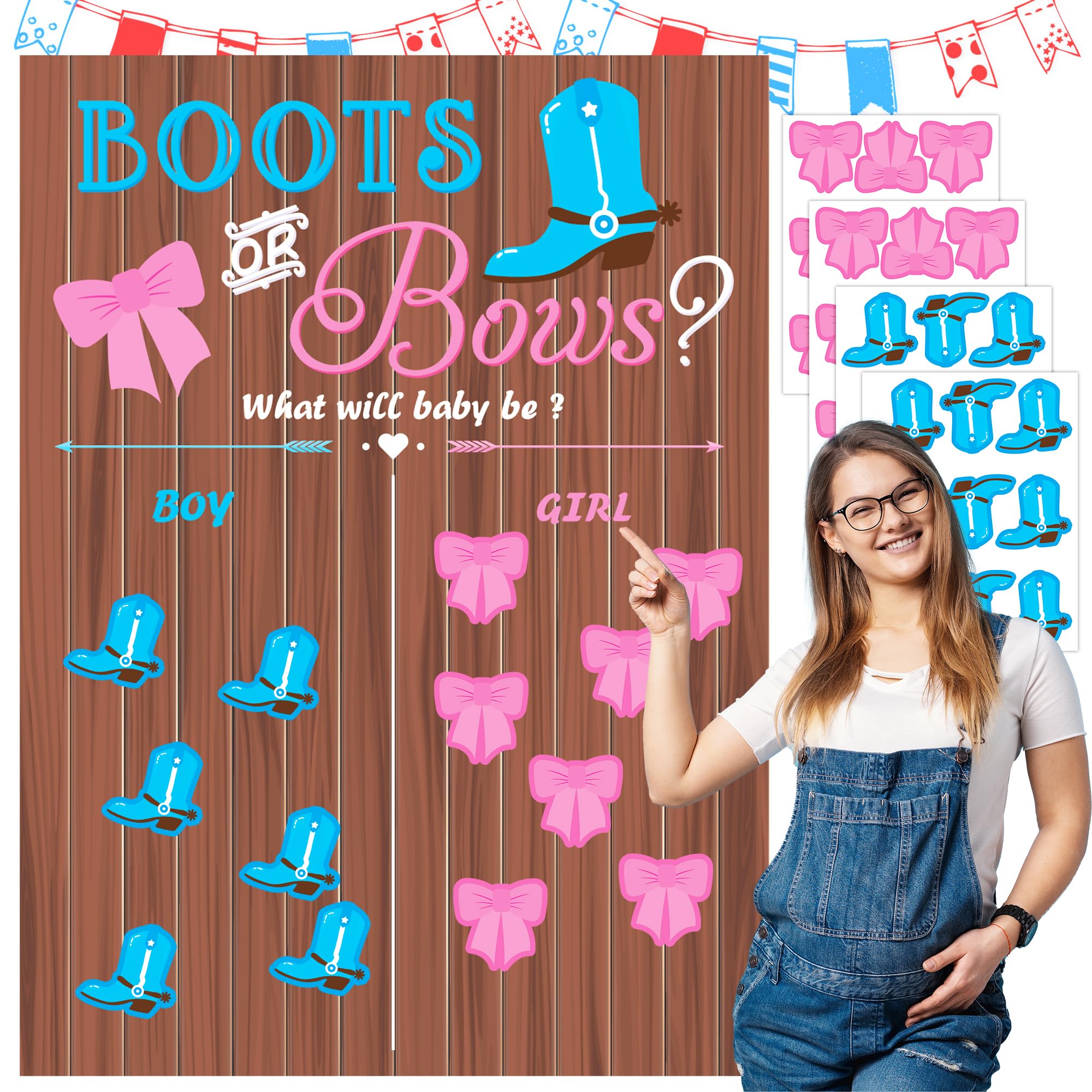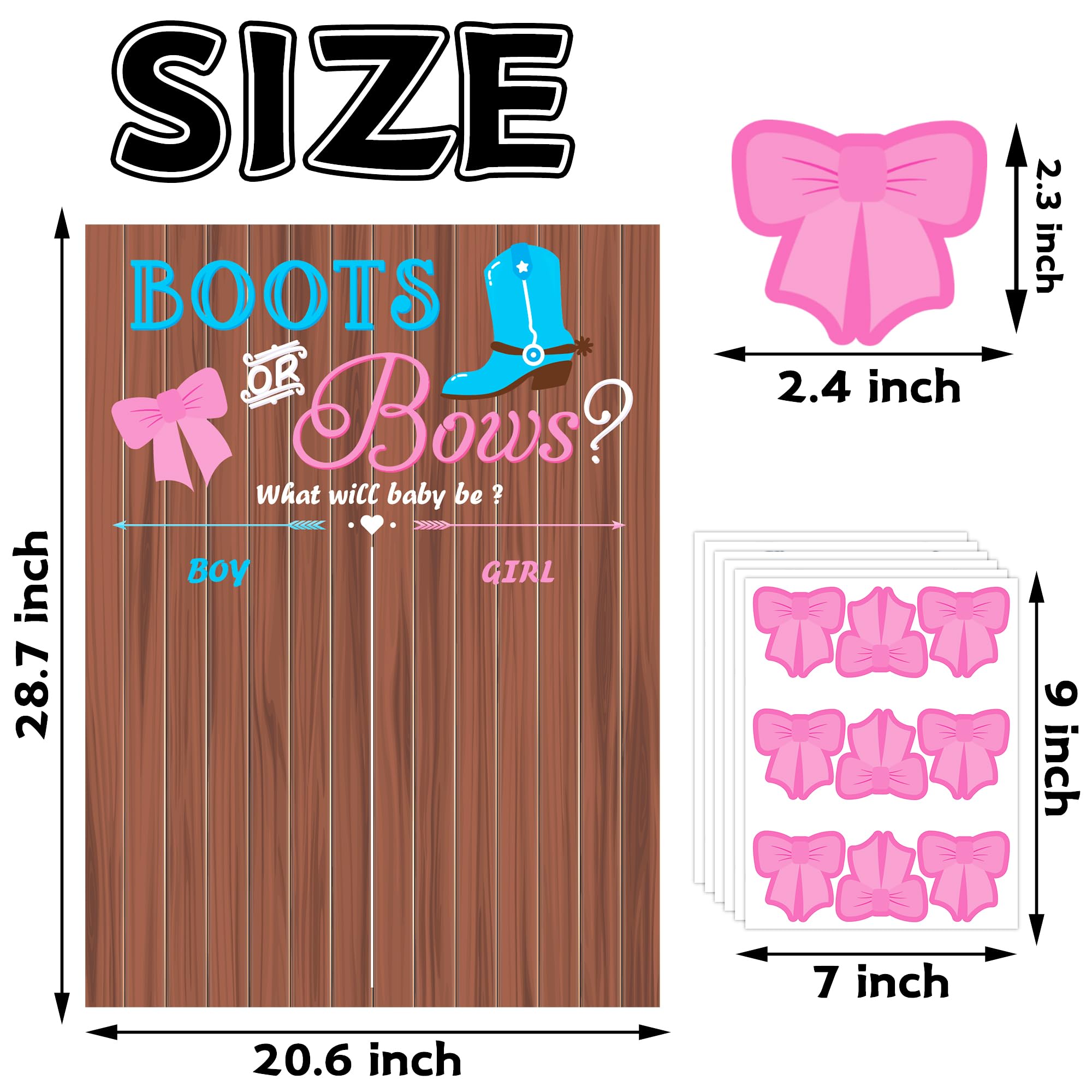 GENDER REVEAL GAMES FOR PARTY: Boots or bows gender reveal games packed include 1 gender reveal voting poster, 6 sheet 54 pieces voting stickers (9 stickers for a sheet). Get ready to add some color to your gender reveal party with our gender reveal ideas game and everyone will have fun with it;
