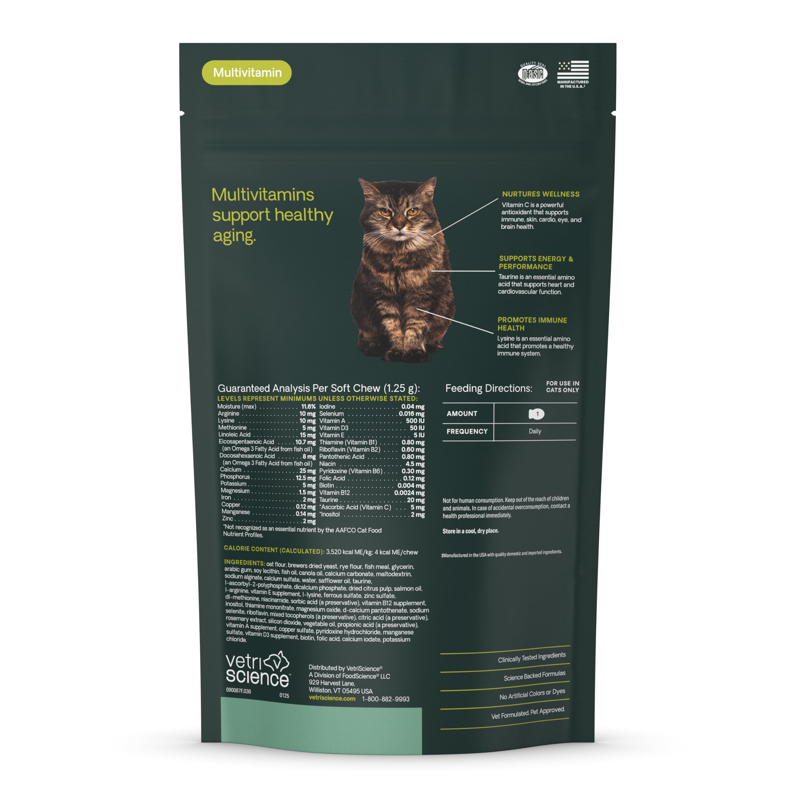 Comprehensive Senior Support: These senior multivitamin chews are packed with over 27 essential nutrients, including vitamins, minerals, fatty acids, and antioxidants, to promote overall health and well-being in senior cats