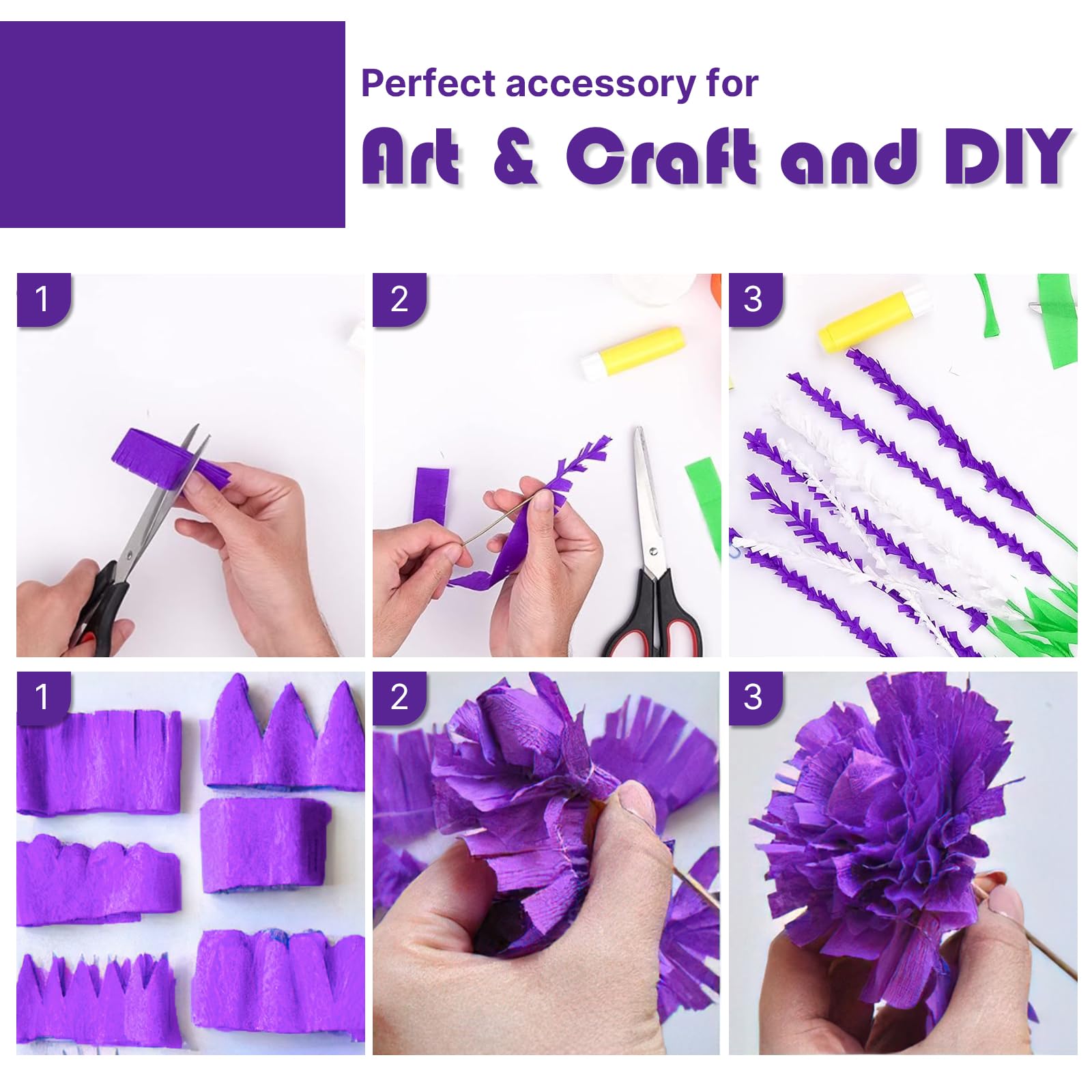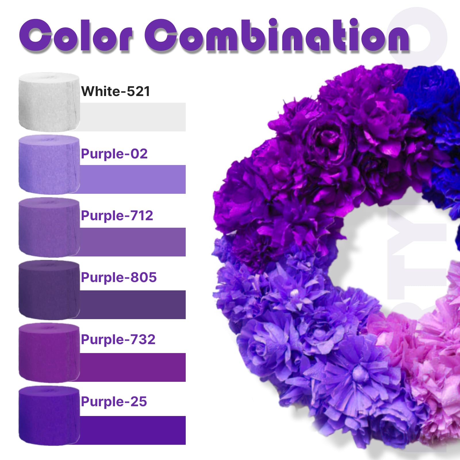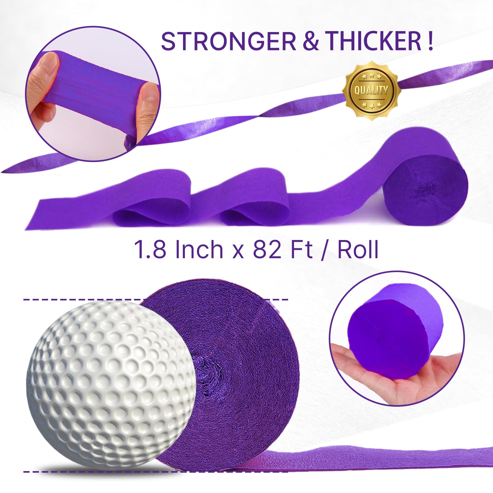 Each roll 82 feet long 1.8 inch wide: package includes dark purple crepe paper (2 rolls), lilac purple crepe paper (2 rolls)