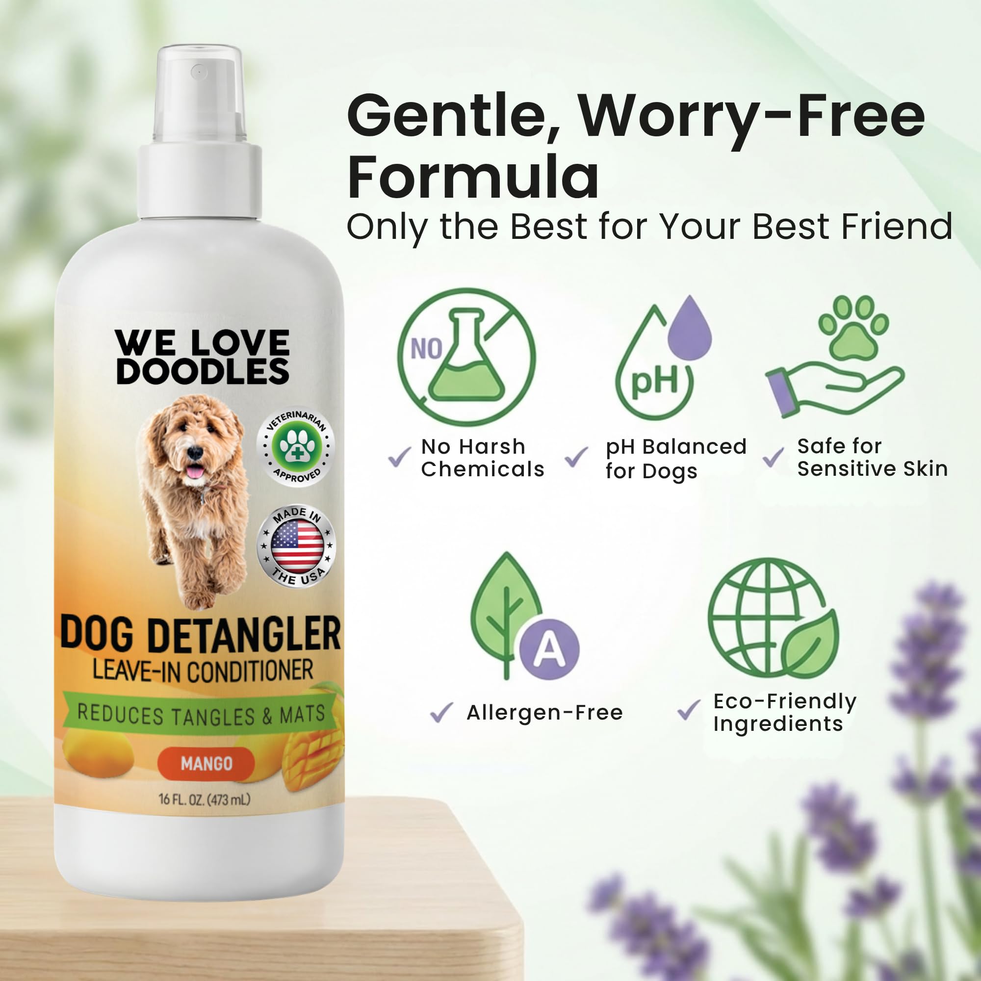 SAFE AND GENTLE FORMULA: Our detangler spray for dogs is free of harsh chemicals and uses a gentle formula that’s safe for dogs of all breeds and ages, making it perfect for regular use.