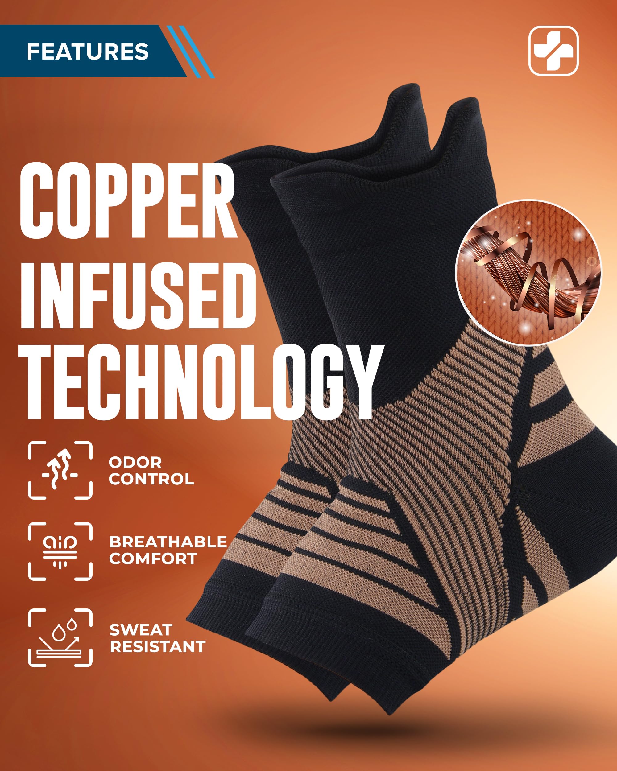 Copper-Infused Protection - Stay fresh and odor-free. The copper ankle sleeves fight odor and wick away moisture to keep your legs cool, dry, and comfortable no matter how active your day gets.