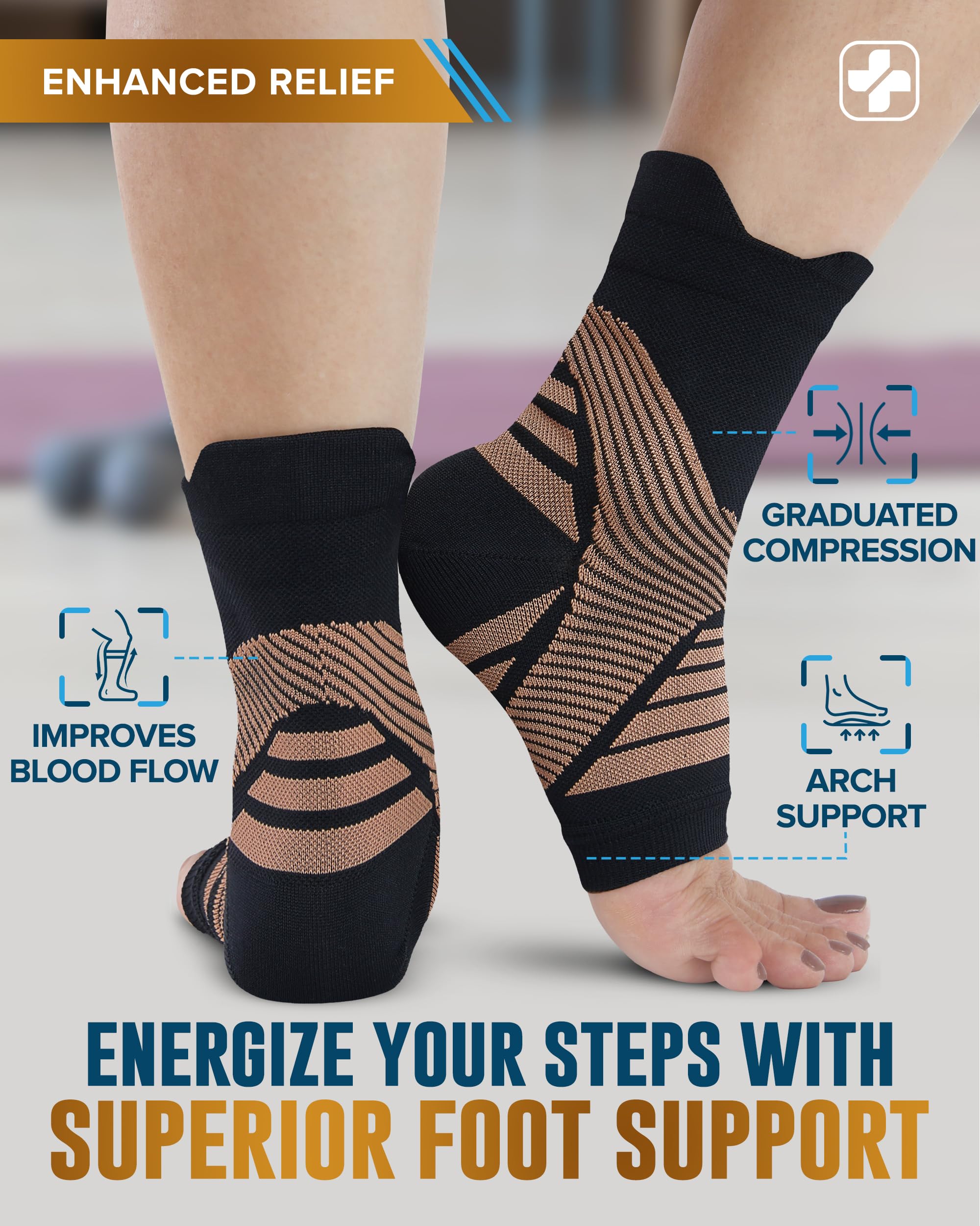 All-Day Relief & Support - Don't let foot pain hold you back. Designed for long wear, these copper relief socks women and men provide support for achilles tendinitis, plantar fasciitis, neuropathy, and injuries.