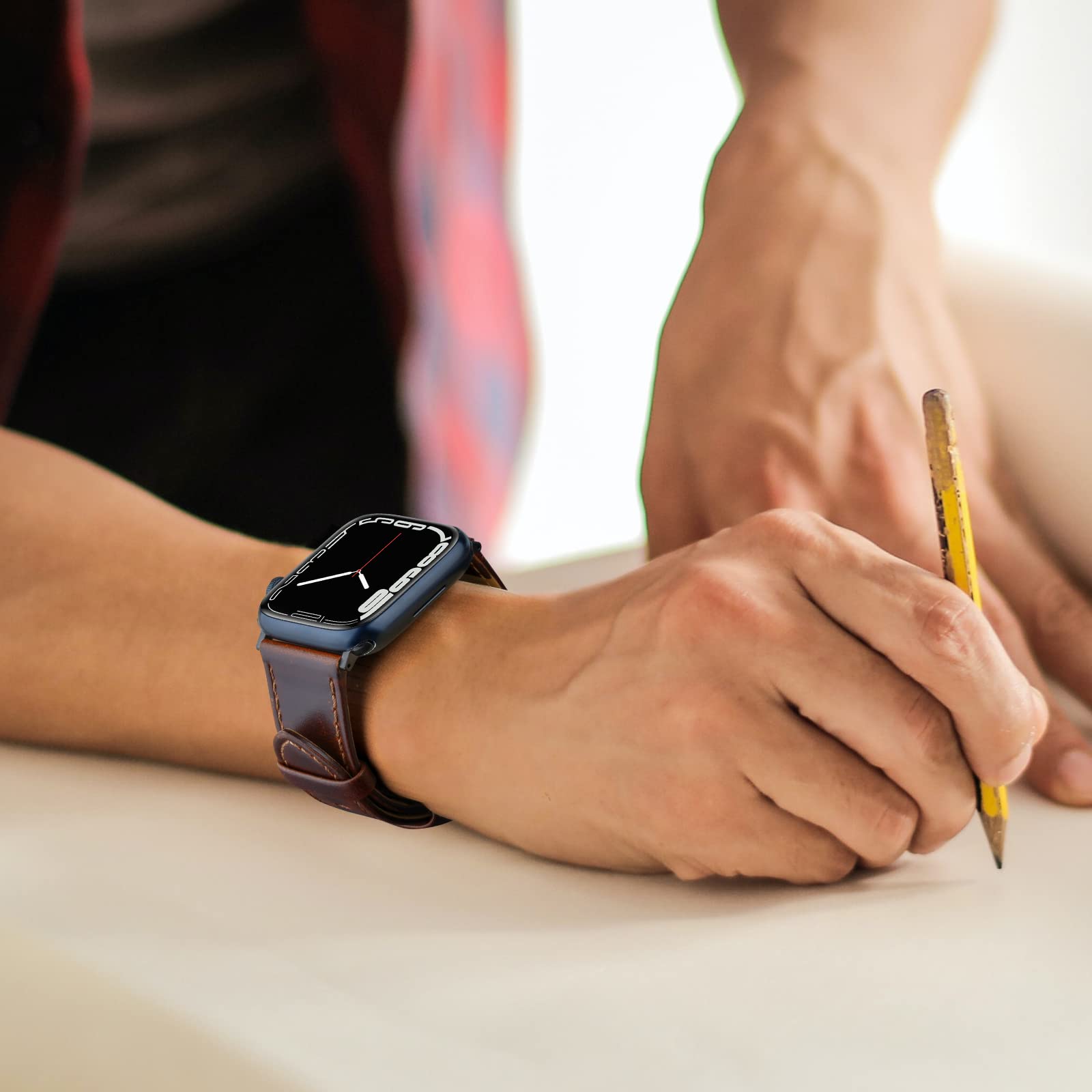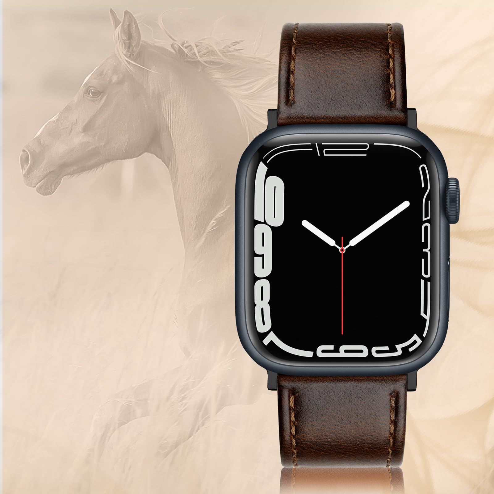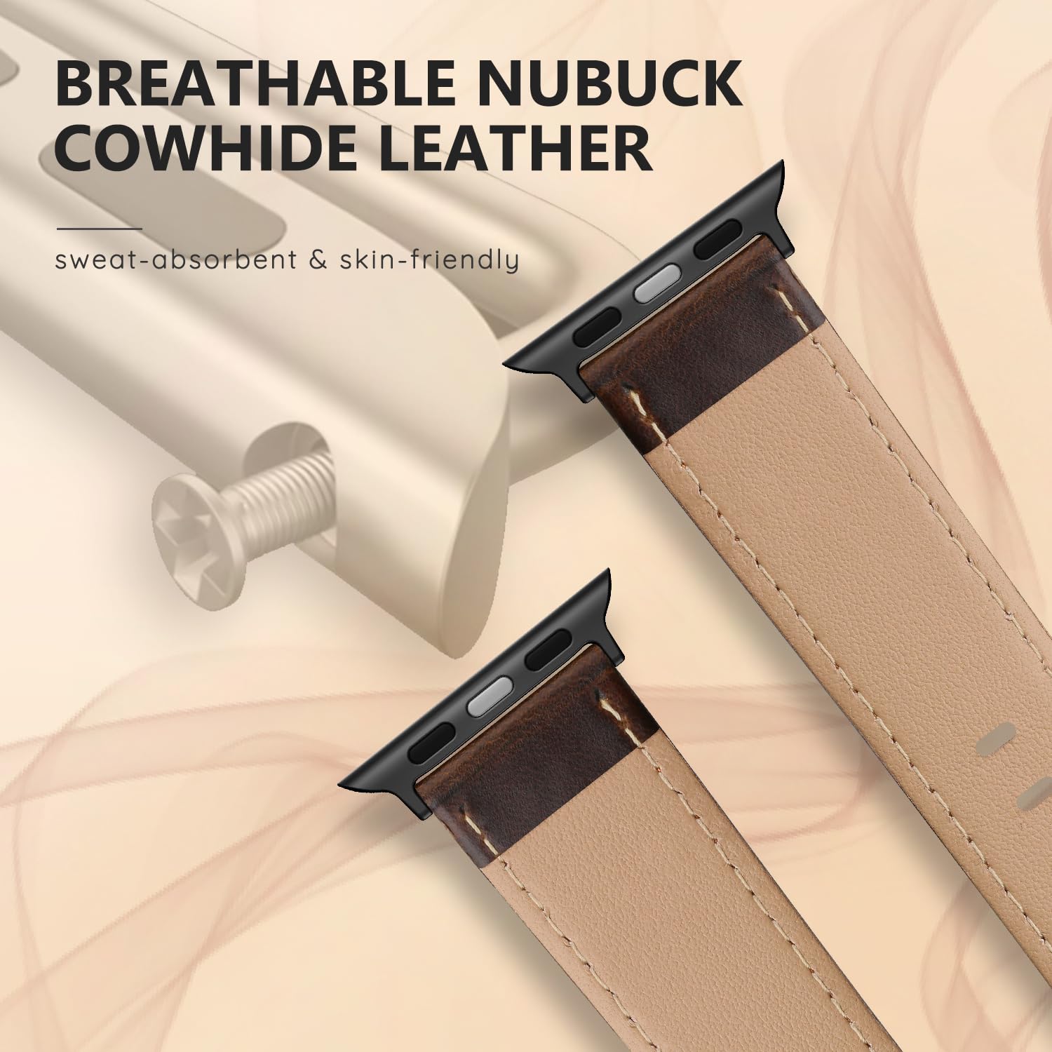 Quality: This leather band is compatible with Apple watch bands 42mm( series 1/ 2/ 3), iWatch 44mm (series 4/5/6), iWatch 45mm (series 7/8/9), iWatch 46mm (series 10) made of unique crazy horse vintage Grain Leather Wristbands with classic stainless steel buckle, Soft smooth touch feeling, very comfortable on your wrist. Note: The color may vary somewhat because of the natural variability of the leather, it is a normal appearance.