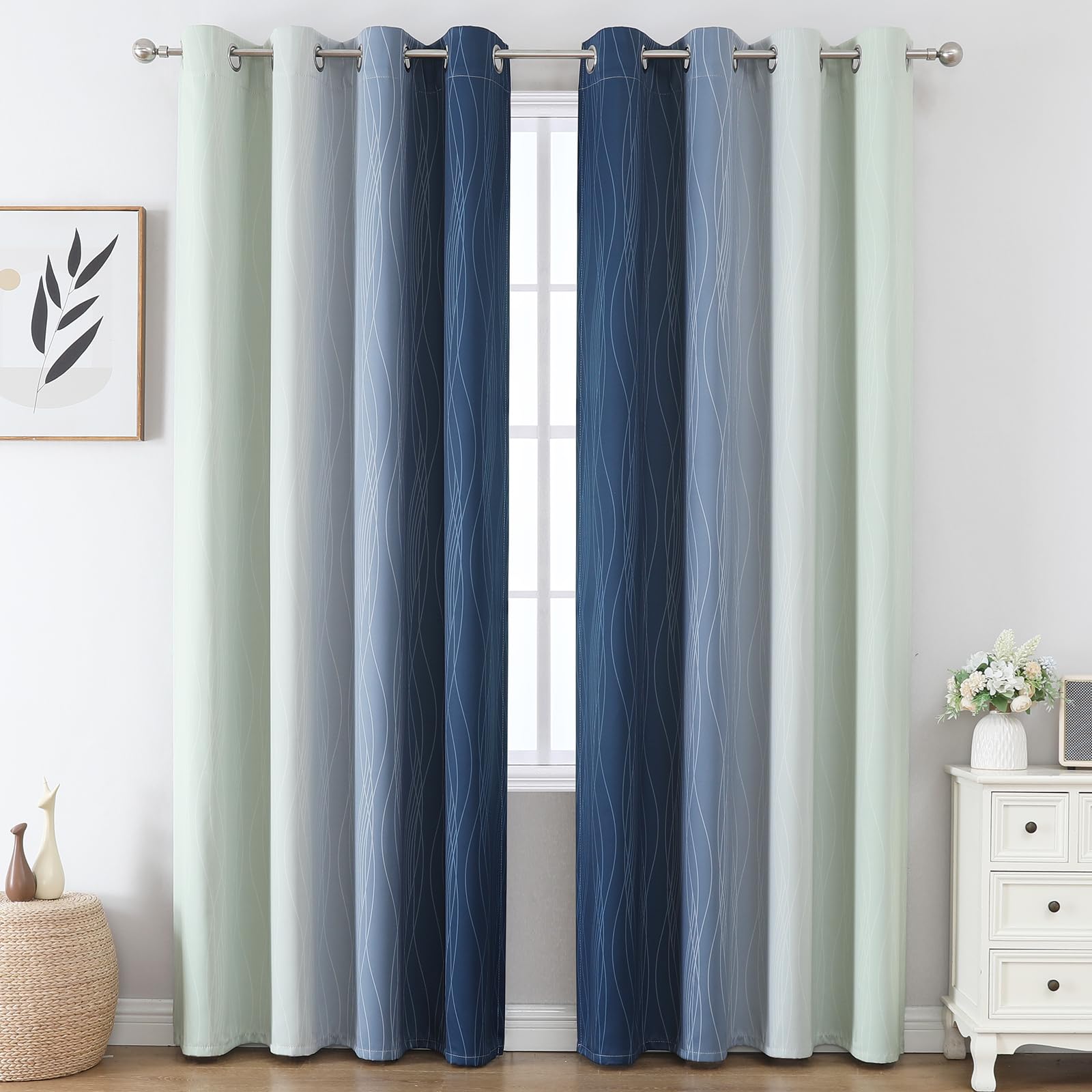 ENERGY SAVING: With our thermal insulated gradient blackout curtains, you will definitely save a portion of your electricity consumption in winter and summer. They can keep heat indoors in winter and block out heat outside in summer, balance room temperature to save spends in energy costs, and meet the requirements of most families. Widely use for bedroom, living room, dining room, office, boys room, girls room, kids room, even sliding doors.