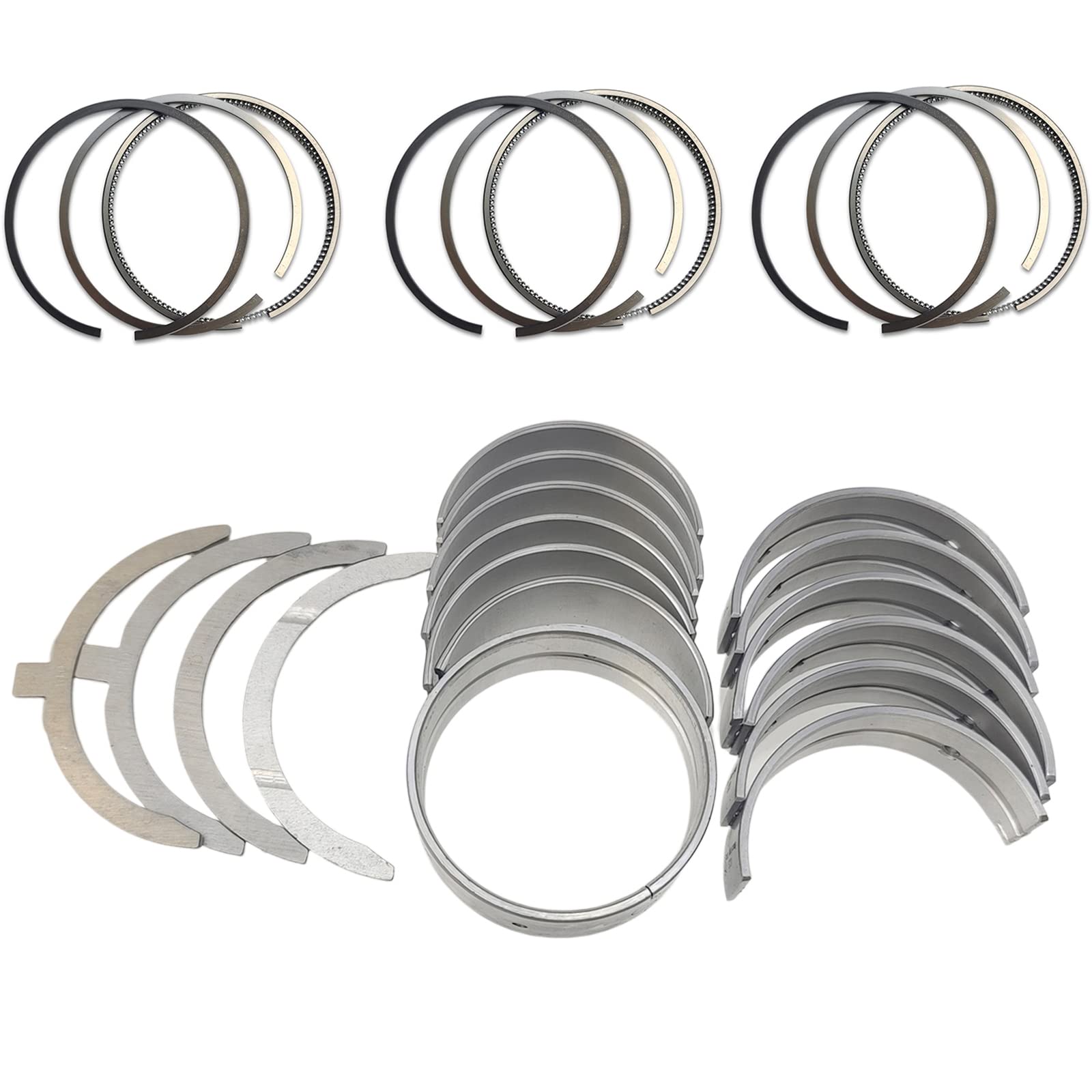 Item Name: Main+ConRod bearing+thrust washer+Full Gasket Kit+Piston Rings Engine Model:for Yanmar 3TN66 Engine for Yanmar 3TNE66 Engine for Yanmar 3TN66-UJ Engine Package included: 3 Sets STD 3TN66 3TNE66 Piston Rings 1 Set STD 3TN66 3TNE66 Crankshaft / Main Bearing 1 Set STD 3TN66 3TNE66 Connecting Con Rod Bearing 1 Set STD 3TN66 3TNE66 Thrust Washer / Bearing 1 Set 3TN66 3TNE66 Full Gasket Kit with Head Gasket Cylinder head gasket Intake manifold gasket Exhaust manifold gasket Valve cover gasket Valve stem seals Crankshaft Front oil seal Crankshaft Rear oil seal Timing Case gasket Oil pump gasket Oil pan gasket Application: Compatible with VIO10 SV13 Excavator Compatible with Yanmar 3TNE66-N1C Engine Compatible with John Deere 240 415 330 332 655 Tractor Compatible with Yanmar 3TN66 3TN66UJ 3TN66-UJ Engine Note: 1. Please tell us of your engine model or a view of engine nameplate when order this item to lower the error rate.Thanks. 2. There are no instructions included in this kit.It is recommended to install professionally. 3.This kit contains a large number of items, and there is some deviation between the picture and the actual items. Please refer to the physical items received, and we will deliver the correct kit for you. You can buy it with confidence! 4.The piston rings in this kit are standard sizes. If you need to increase the size, please contact us to change the size of the piston ring. Thank you for your cooperation! 5.The bearing kits in this kit are standard sizes. If you need to increase the size, please contact us to change the size that suits you. Thank you for your cooperation.