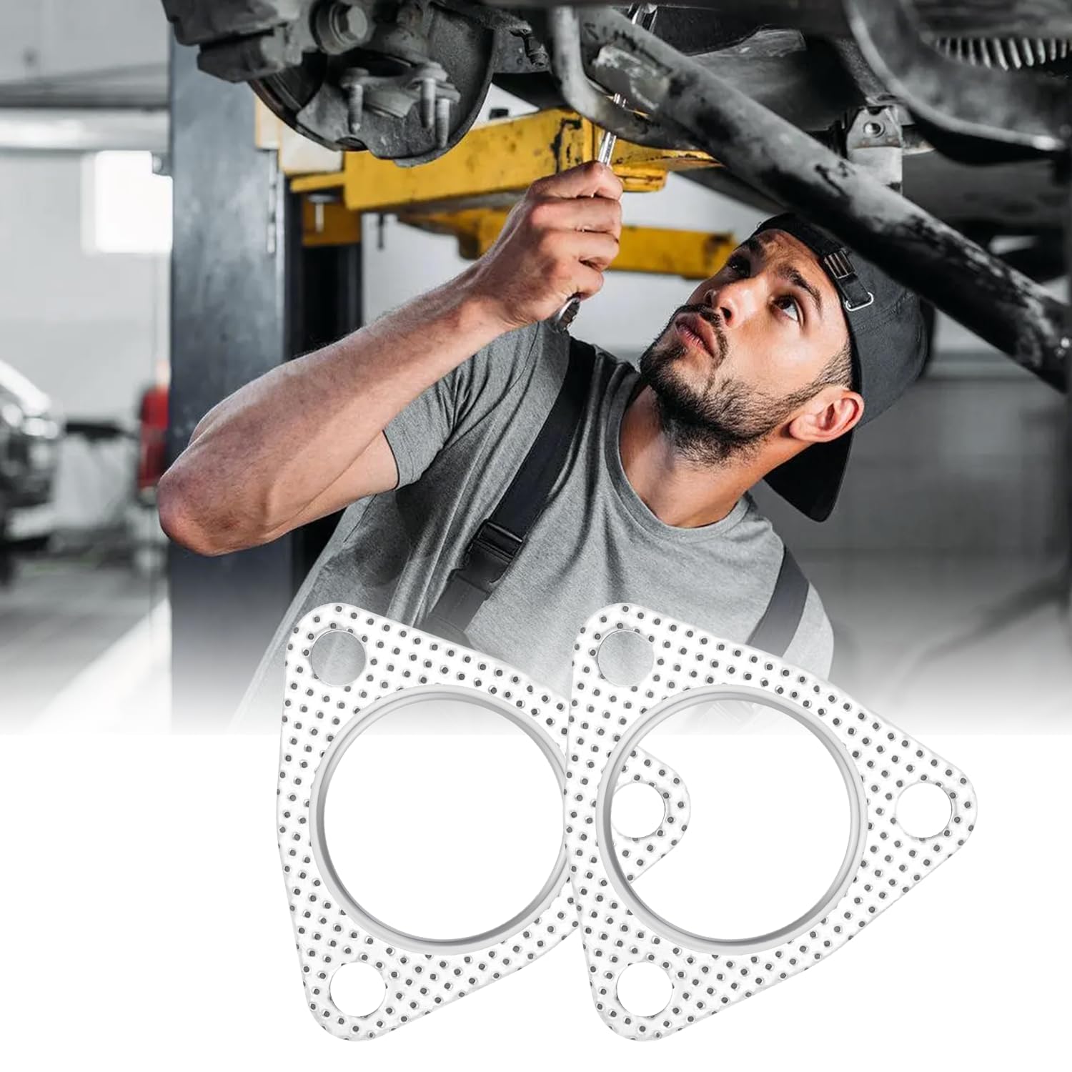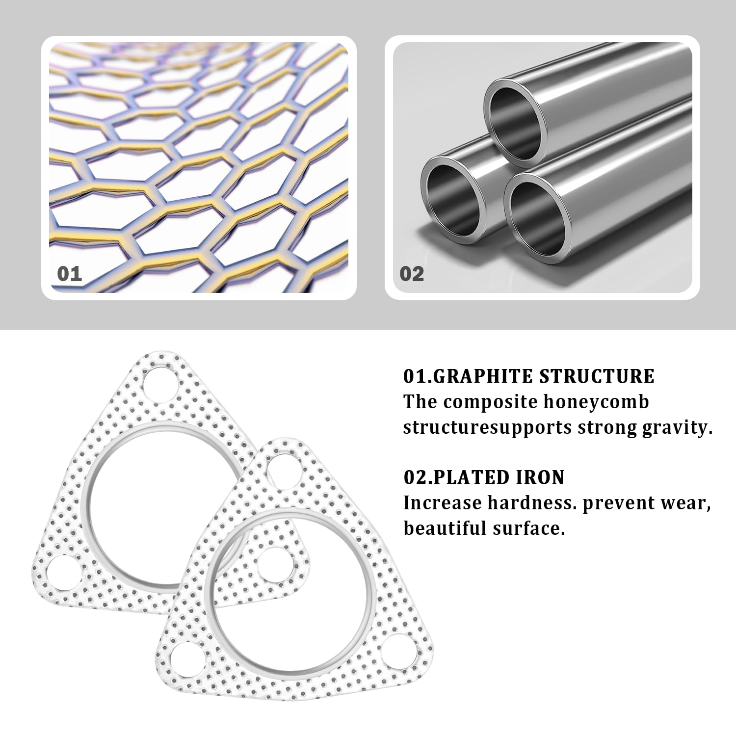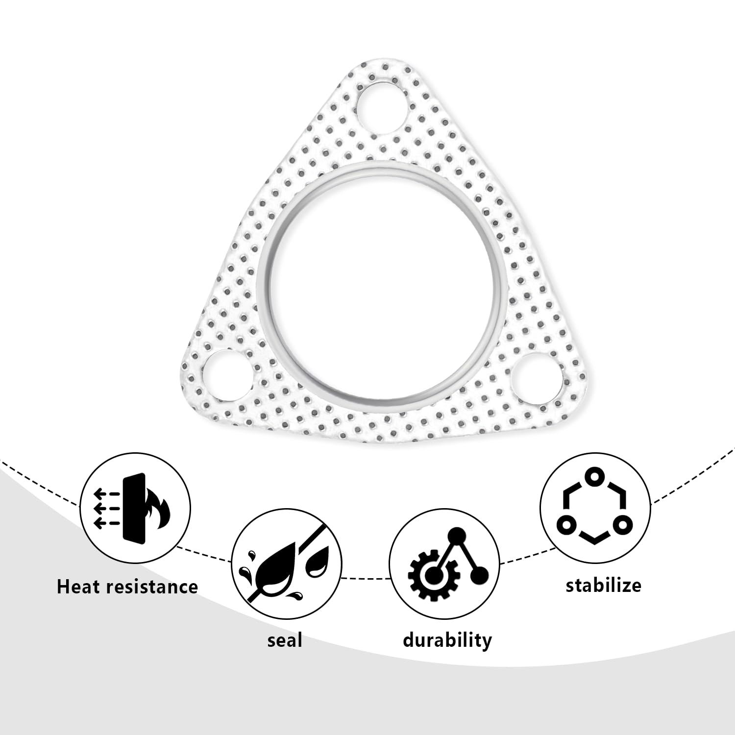 COMPOSITE MATERIAL: Our exhaust gasket is made of premium composite material, the middle material is graphite asbestos, which has good high temperature resistance and sealing; the outer layer is galvanized sheet, which is strong and durable, and is not easy to rust. The combination of the two is what makes up this essential car part.