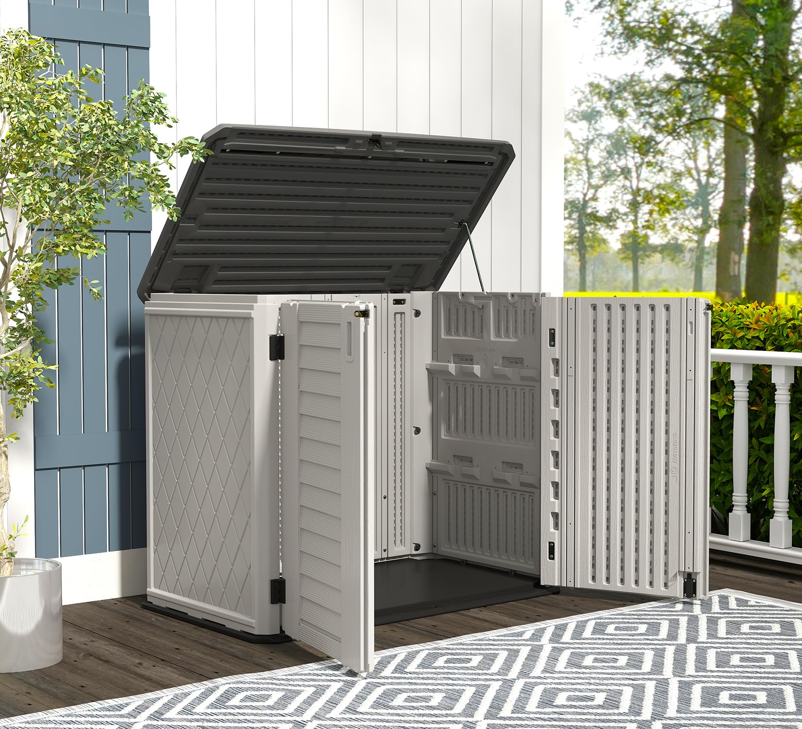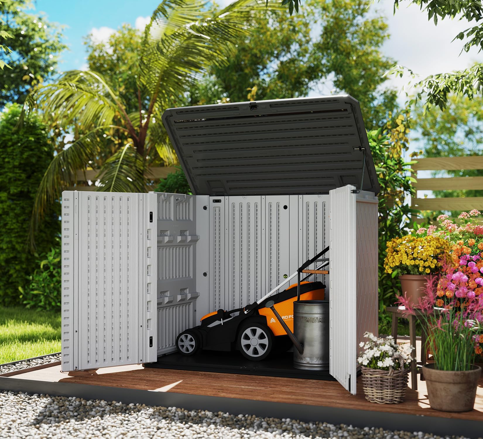 【Multi-purpose Storage】 Perfect for storing garden tools, BBQ grills, firewood, seat cushions, and two - small trash cans, patio & garden accessories and more.