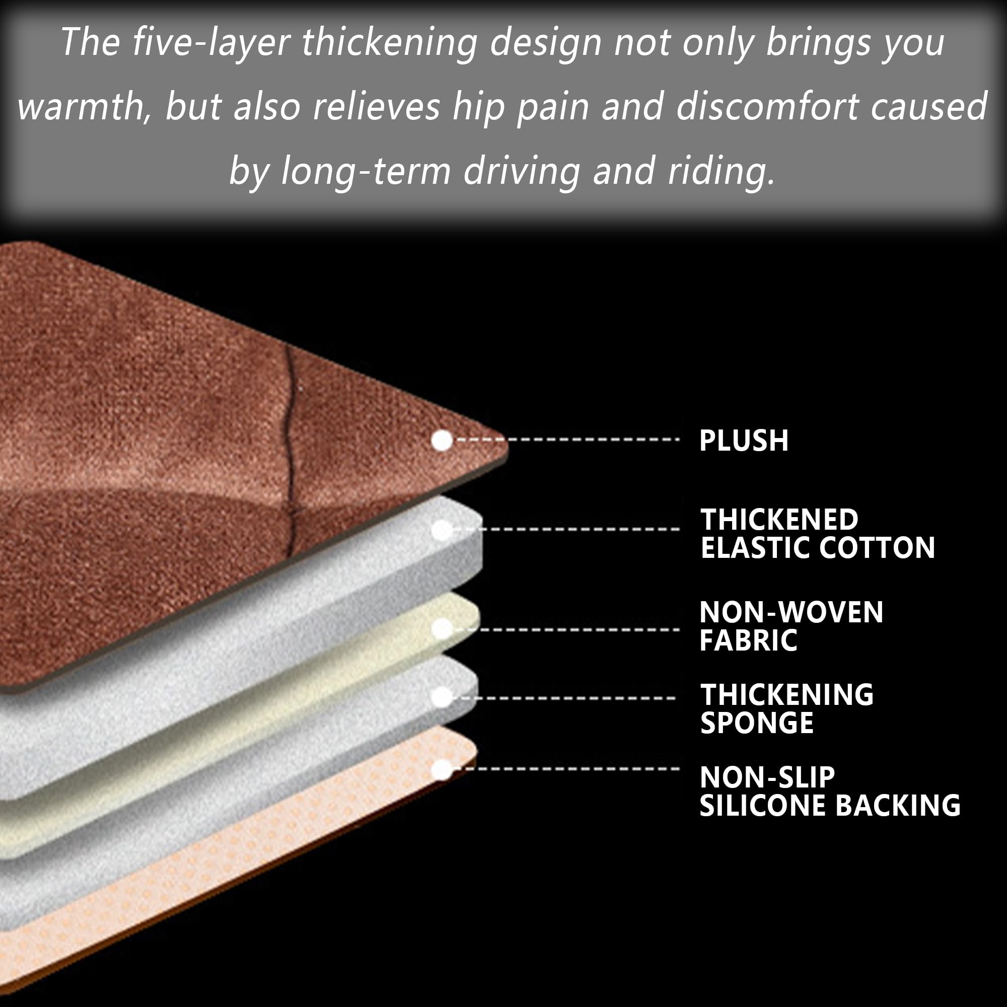 ✨【Warm Winter Atmosphere】 In the cold winter, do your body also want to hide in the warm embrace as soon as possible? So, it's urgent to prepare a plush and comfortable seat cushion for your car! Our product features a five layer thickened design, covered with soft short plush on the surface, and filled with thickened sponge and elastic cotton inside, making you sit for a long time without fatigue!