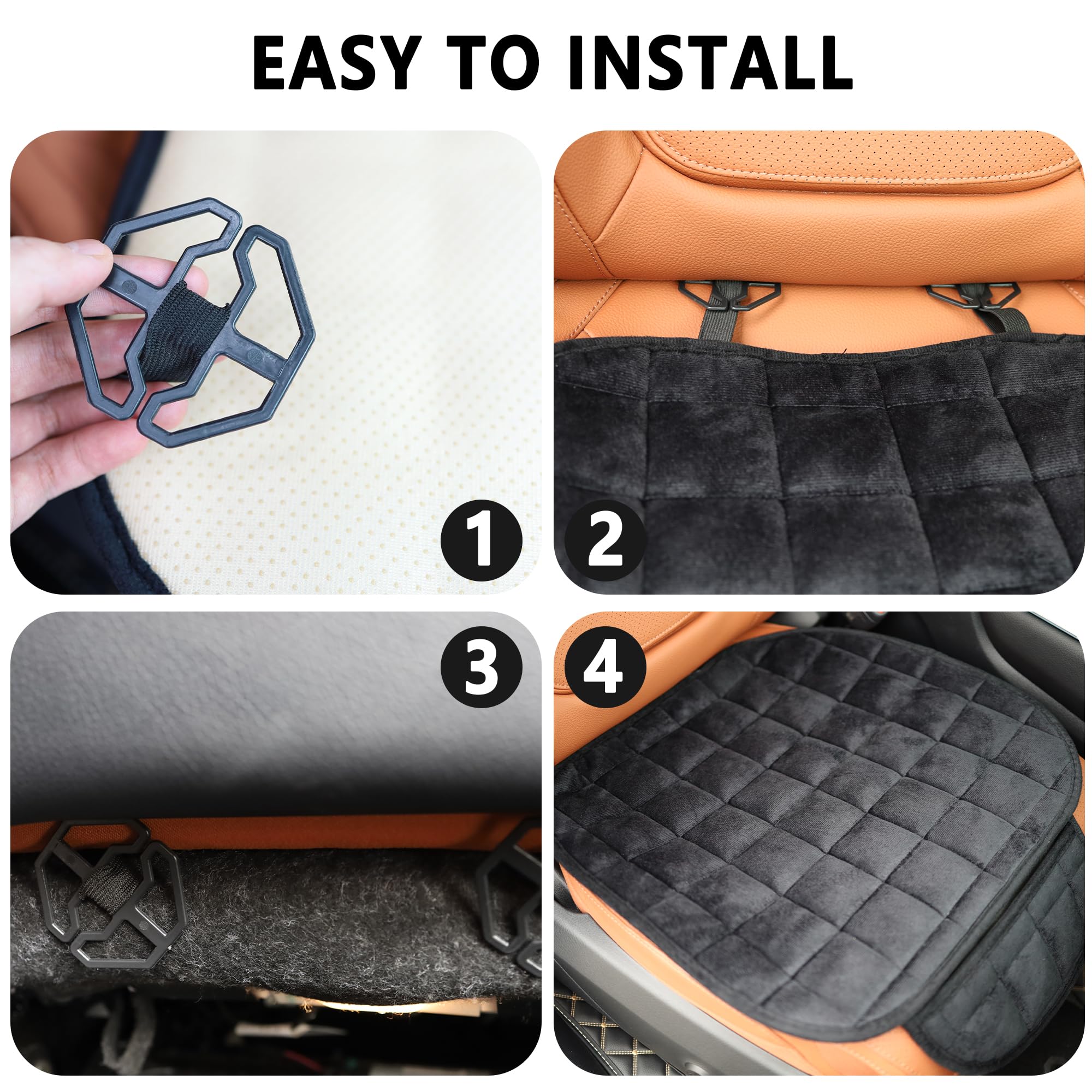 ✨【How to Install】 Car front seat covers are suitable for 99% of cars, SUVs, trucks and vans on the market, and their installation is very simple. [1] First, install two plastic clips on the two elastic belts on the upper end of the seat cushion. [2] Firmly insert the two clips into the gaps in the seat. [3] Finally, organize the surrounding area of the car seat protector to perfectly cover the seat.