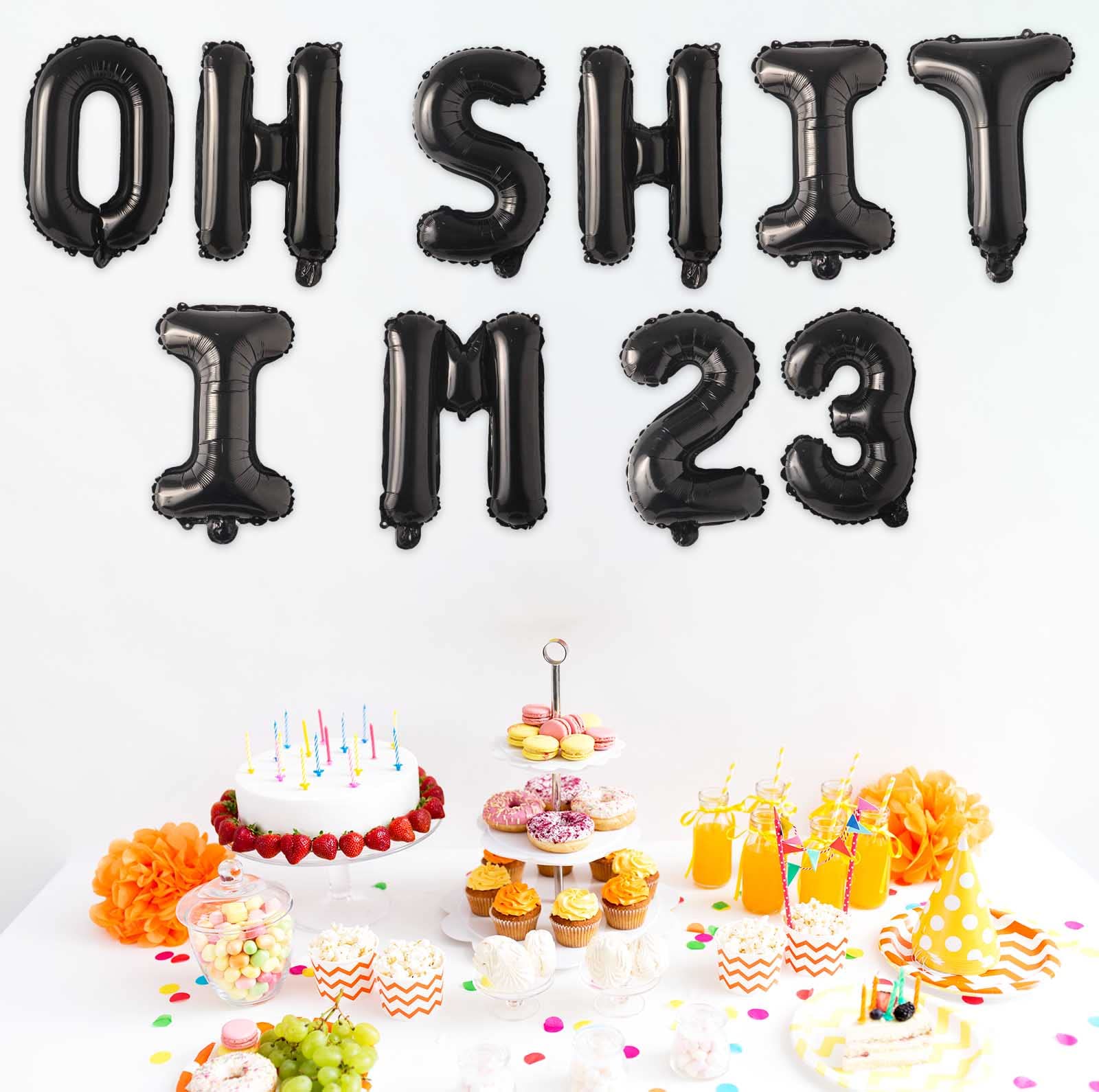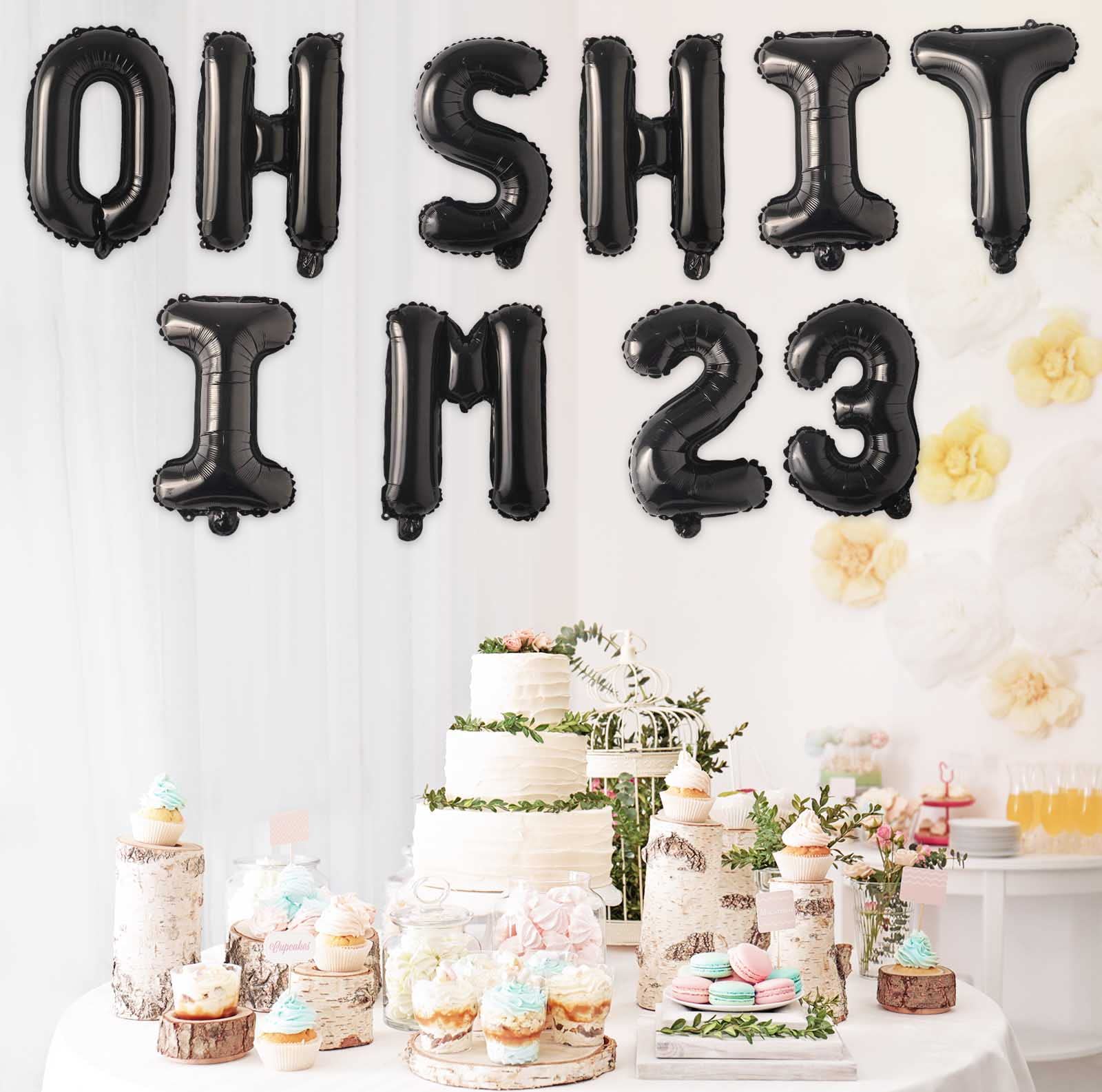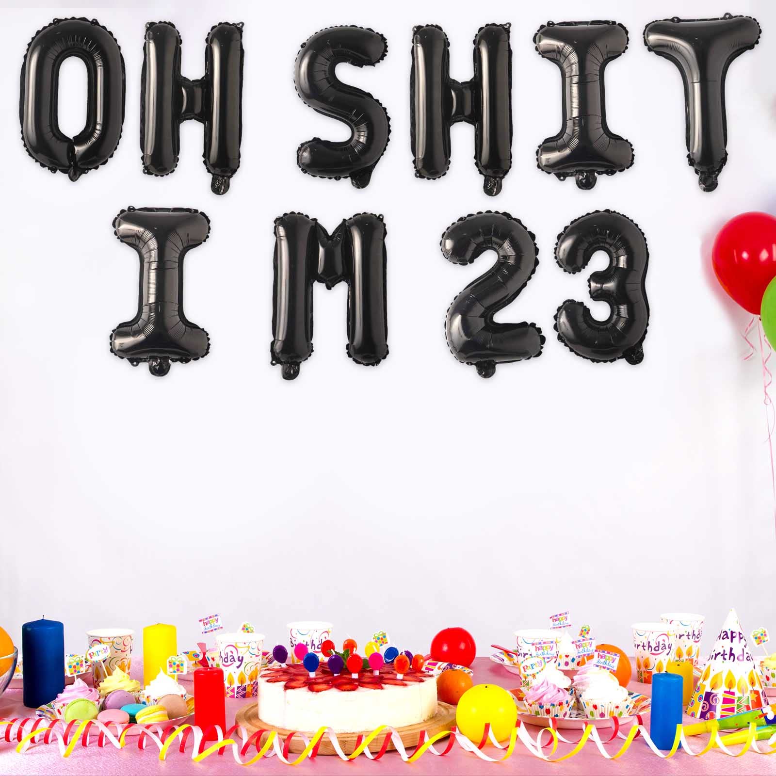Funny Birthday themed decorations: All balloons are printed with black color(O H S H I T I M 2 3), Make your birthday party more fun