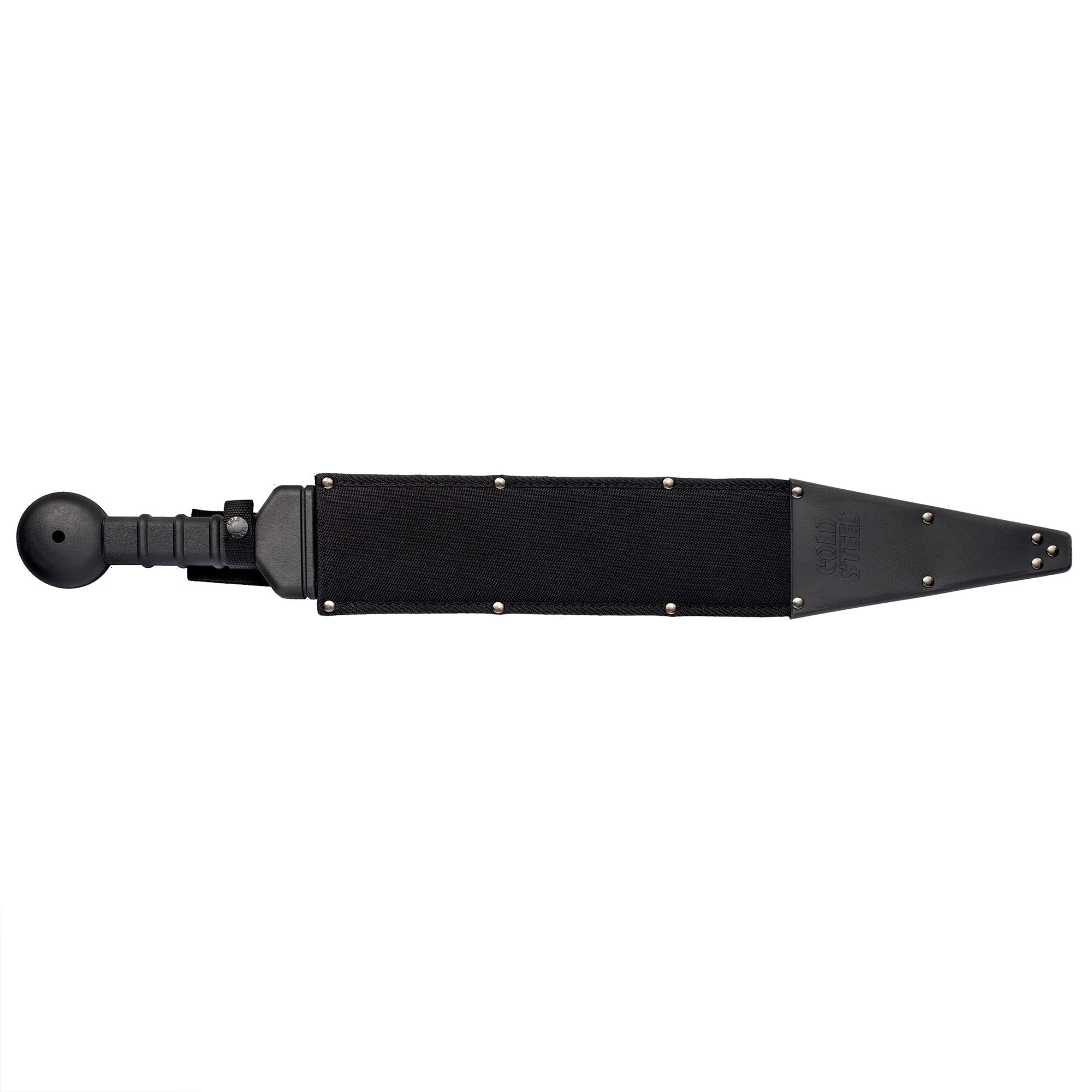 The Cold Steel Gladius Machete remains one of the most popular models in our hybrid sword / machete series. It’s made from spring tempered 1055 Carbon steel and hand sharpened at our facility in Ventura, California. The Gladius Machete features the classic guard and ball shaped pommel of years gone by, but with the added strength and durability found with full-tang construction and modern materials. We use high-impact Polypropylene for our handle, making it almost impervious to the elements and rugged beyond belief. The Gladius Machete comes complete with a sturdy Cor-Exª sheath and belt loop for easy of carry and use.
