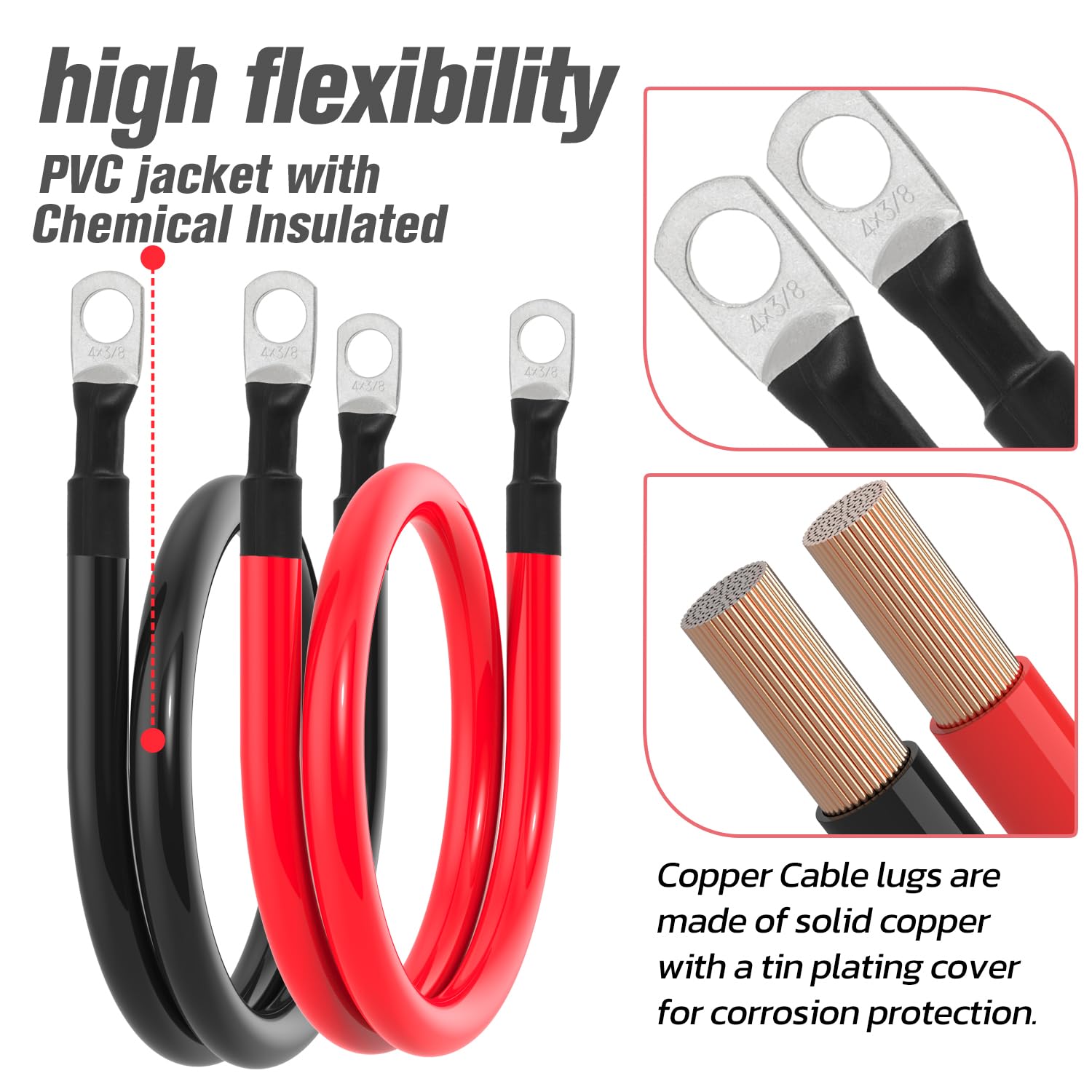 Wire Gauge: 4 AWG; Length: 18in; Terminal lugs: 3/8"