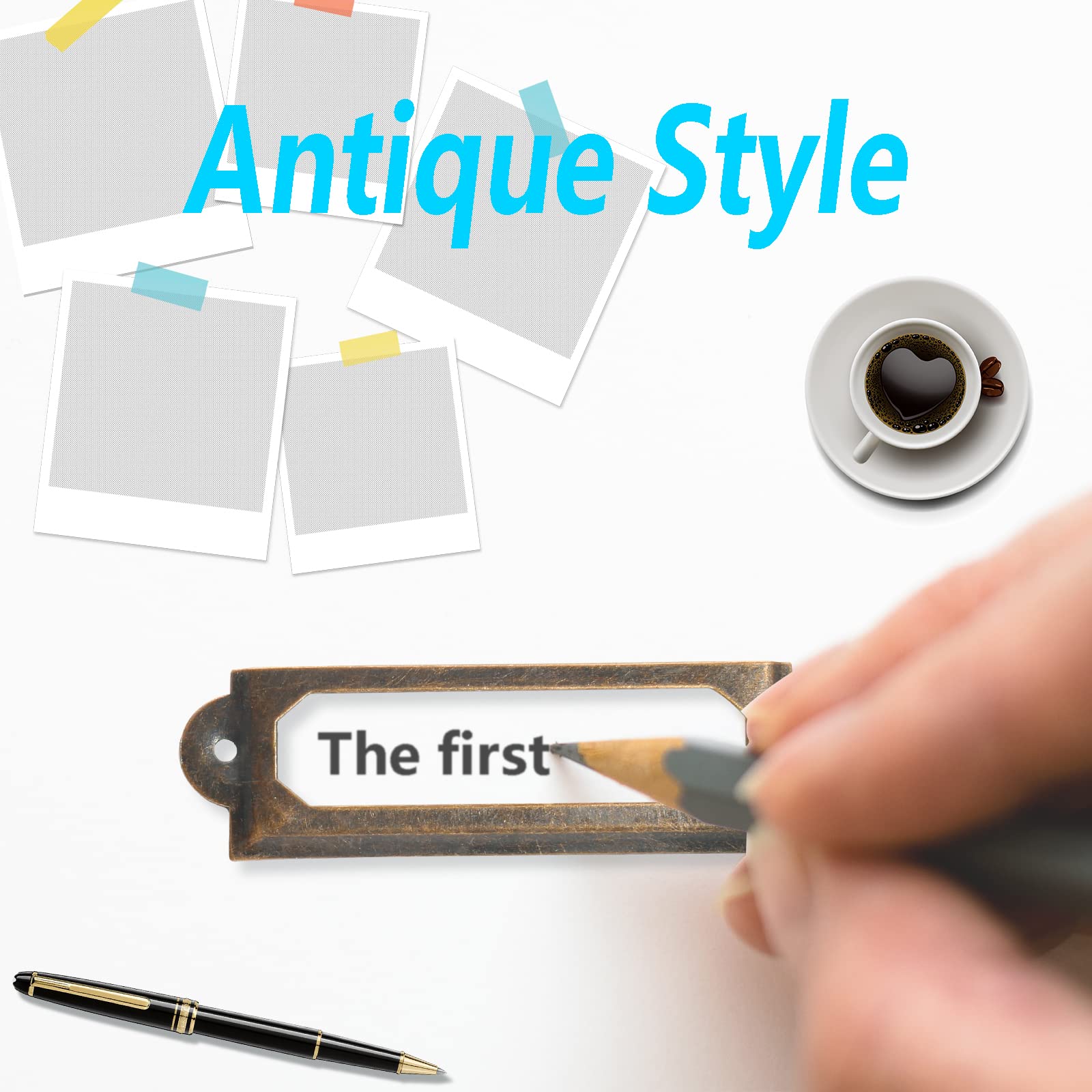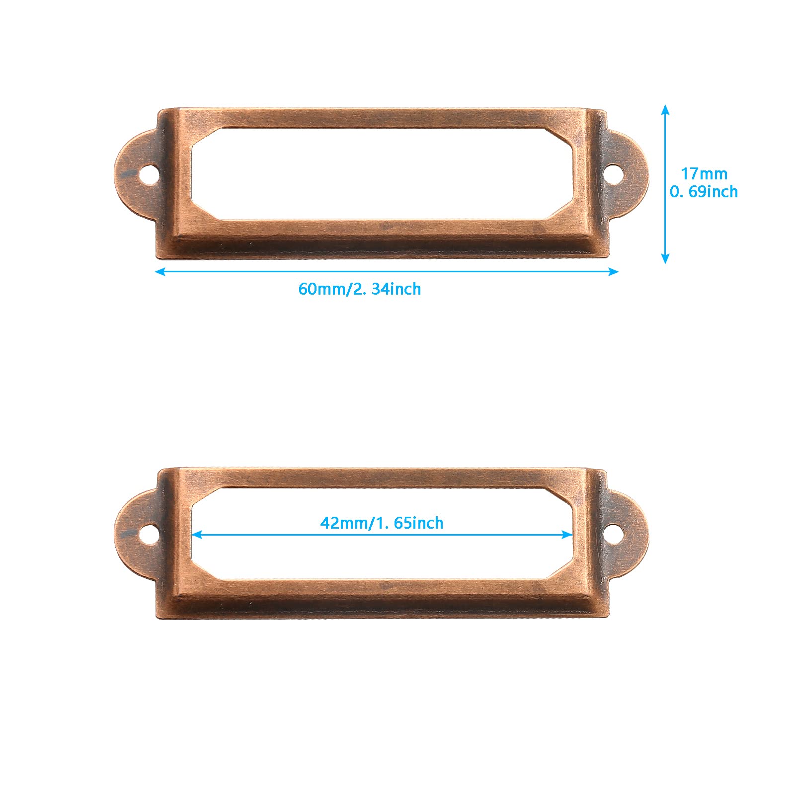 WHAT WILL YOU GET - You will get 40 pieces antique label holder. Overall size is 60mm x 17mm/2.36inch x 0.67inch(LxW), mounting hole diameter is 2mm/0.08inch. We equip each name card frame with two screws, the height of the screws is 8.3mm/0.33inch.
