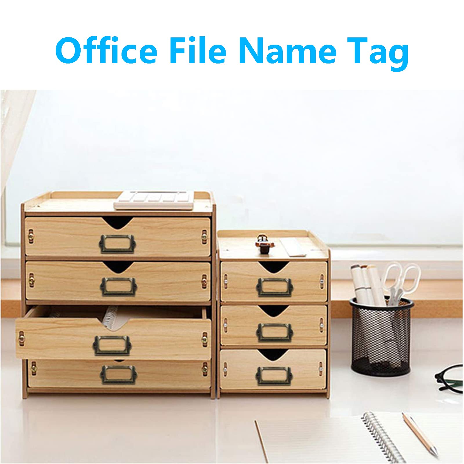 MULTIPLE USE - These metal label holders are suitable for homes, offices, libraries, etc. The card label frames match well with your jewelry boxes, gift boxes, cabinets, file boxes and etc. You can also use it to identify items in drawers such as filing cabinets, drawers, bookshelves, bookcases, wooden storage boxes, wine cellars, and library shelves.