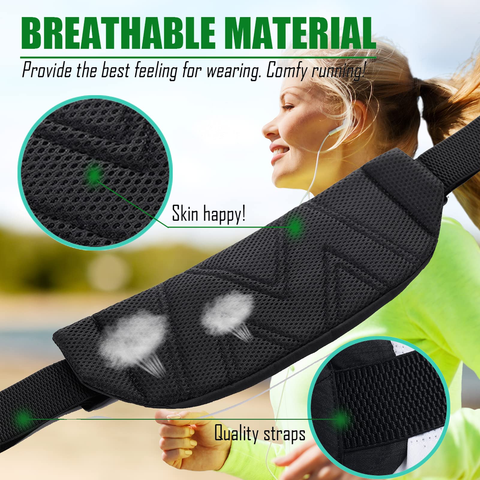 【HOLD MORE BELONGINGS】: Any sizes of smartphones, passport, keys, credit cards, money, energy gels. Ear bud hole is for pleasant music in running. It can also be used as fanny pack greatly for all forms of exercise including walking, running, hiking, riding bikes, working out at the gym and more.