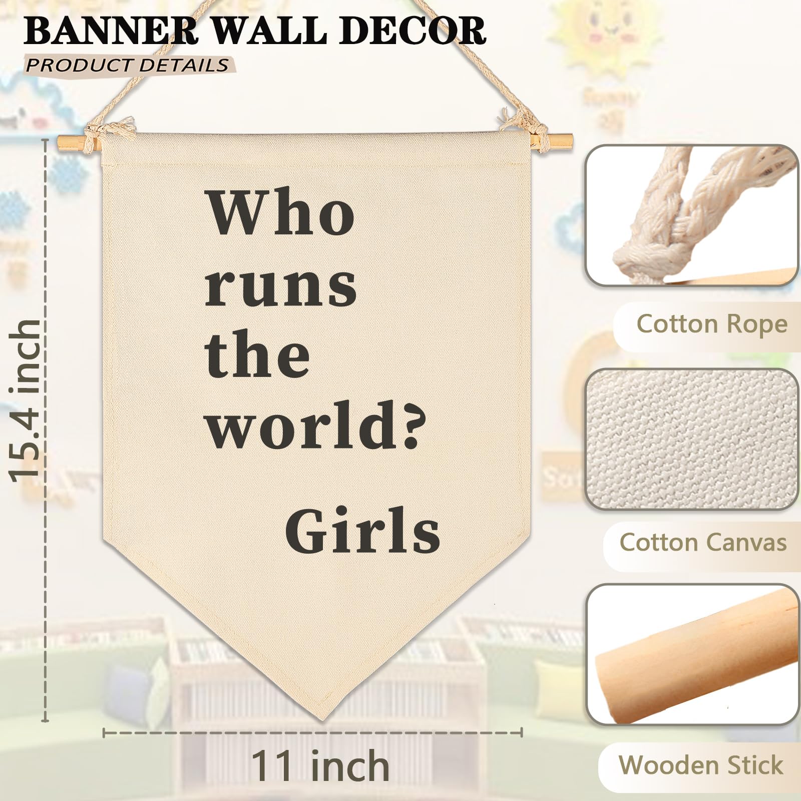 Crafted from natural cotton canvas, this 15.4 x 11 inch nursery wall banner brings a soft and calming touch to baby room, toddler space. The durable fabric keeps its shape with a natural texture, while the clear print stays bright with everyday use. Lightweight and easy to hang, it comes with a wooden dowel and pre-tied twine for quick setup on walls, doors or shelves. The versatile size fits small spaces without feeling crowded, making it perfect for creating a cozy nursery atmosphere. A thoughtful gift for baby showers, newborn arrival or first birthday.