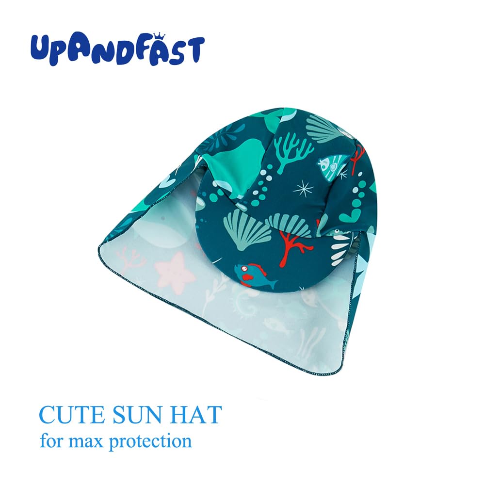 CUTE SUN HAT: Toddler rash guard that comes with a lovely hat, it covers baby's delicate face and neck. which can give baby more protection when playing at the sea, beach or under the sun