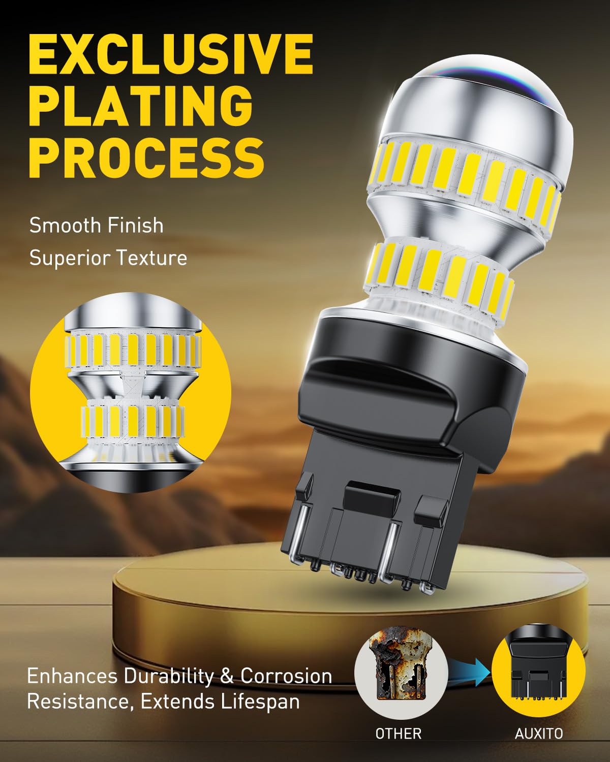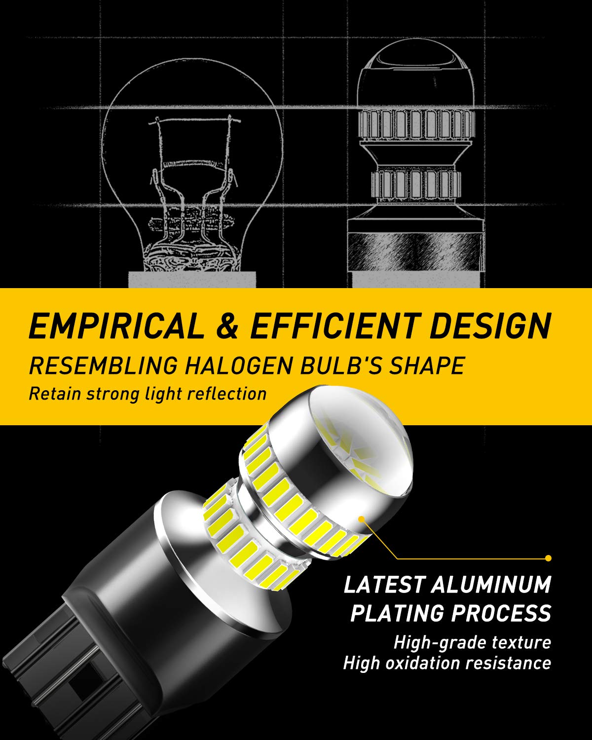 Optimized circuit design ensures silent operation without any current noise, avoiding interference with car audio or navigation systems. These 7440 led bulbs lights up instantly with no warm-up time, unlike traditional bulbs, enhances driving safety with faster response during driving at night or in rainy/foggy/snowy weather.