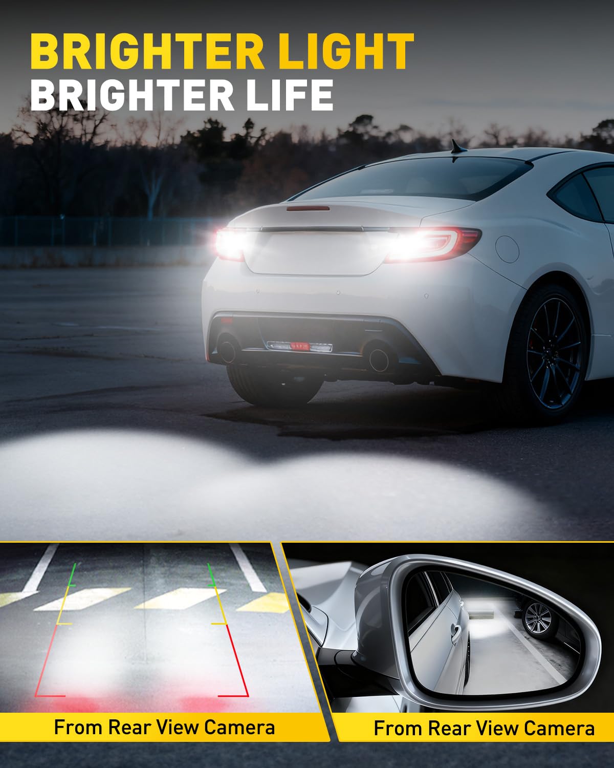 Equipped with high-quality LED beads, these 7443 led bulbs are 400% brighter than traditional halogen bulbs. 6000K cool white light is close to daylight, and the precision optical lens concentrates light to clearly illuminate obstacles, steps, and low objects within 5 meters behind the car. It eliminates blurred vision during night reversing, making parking easy even for new drivers.