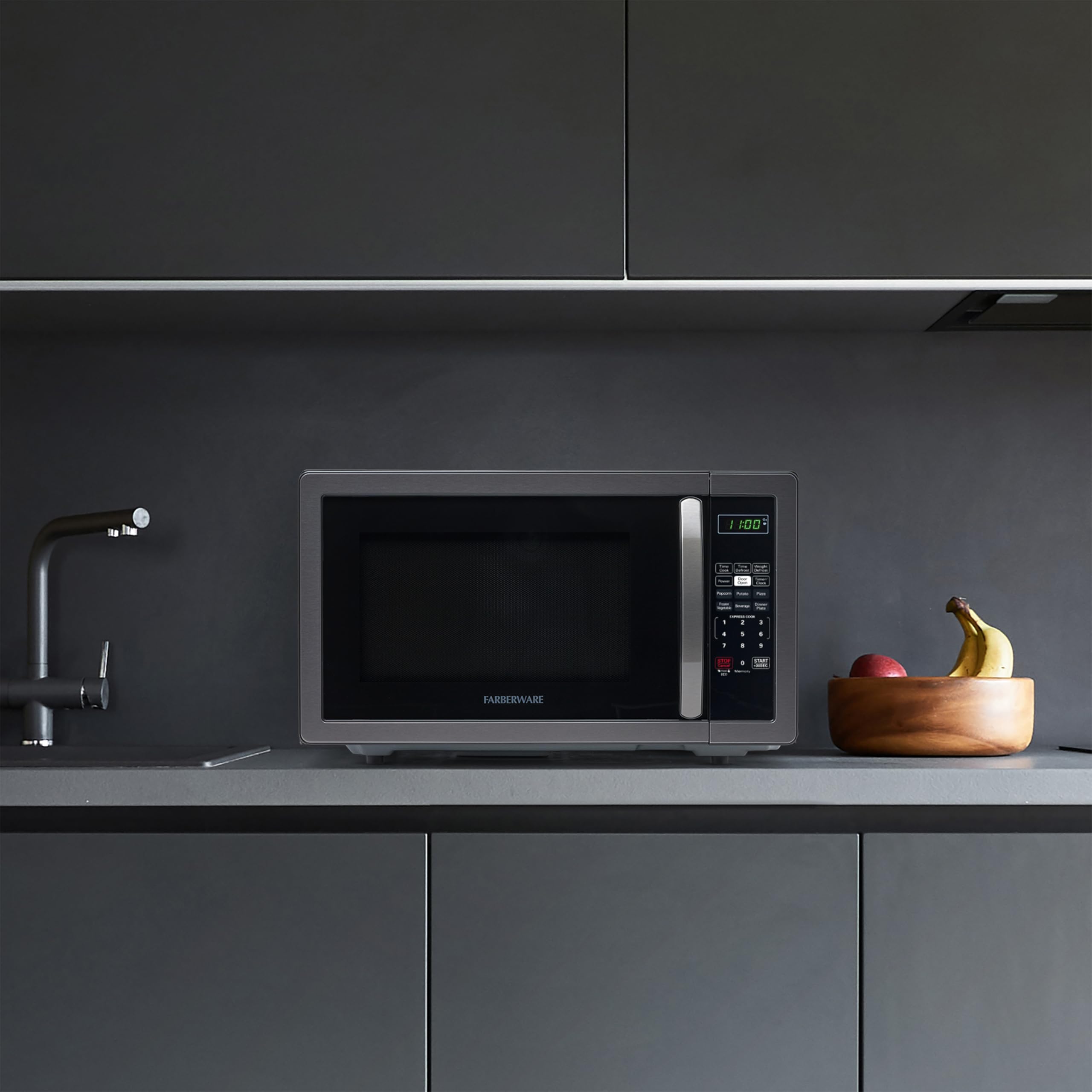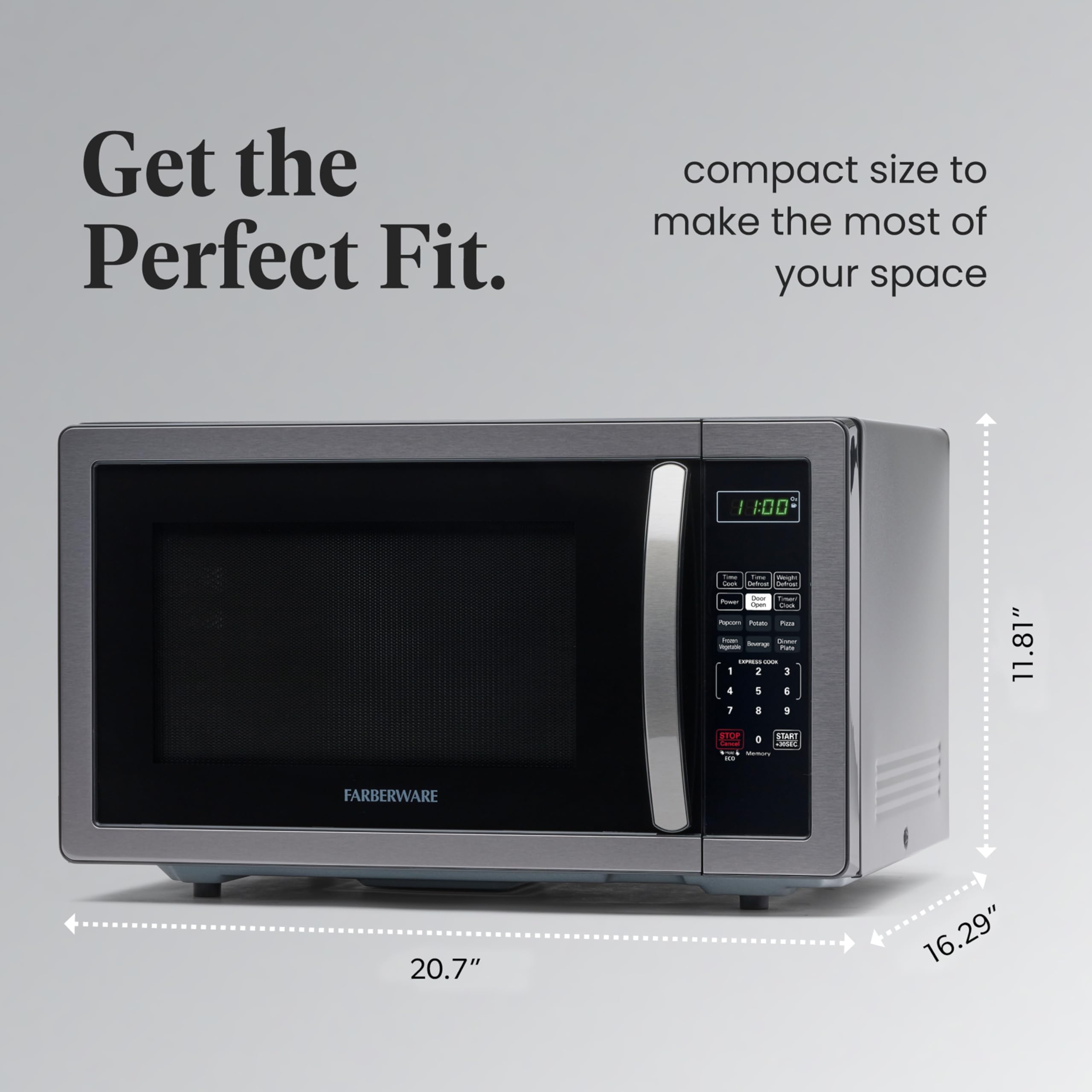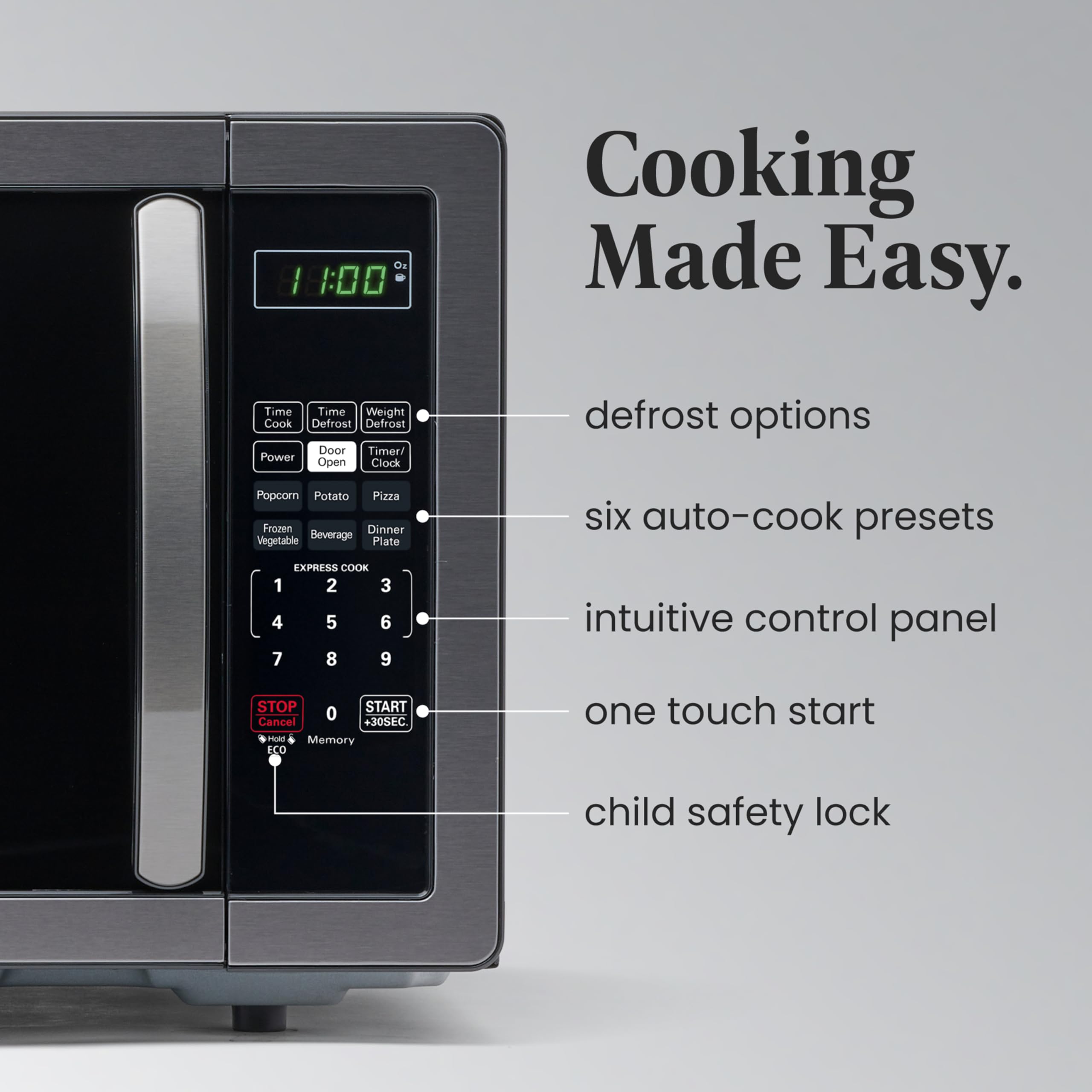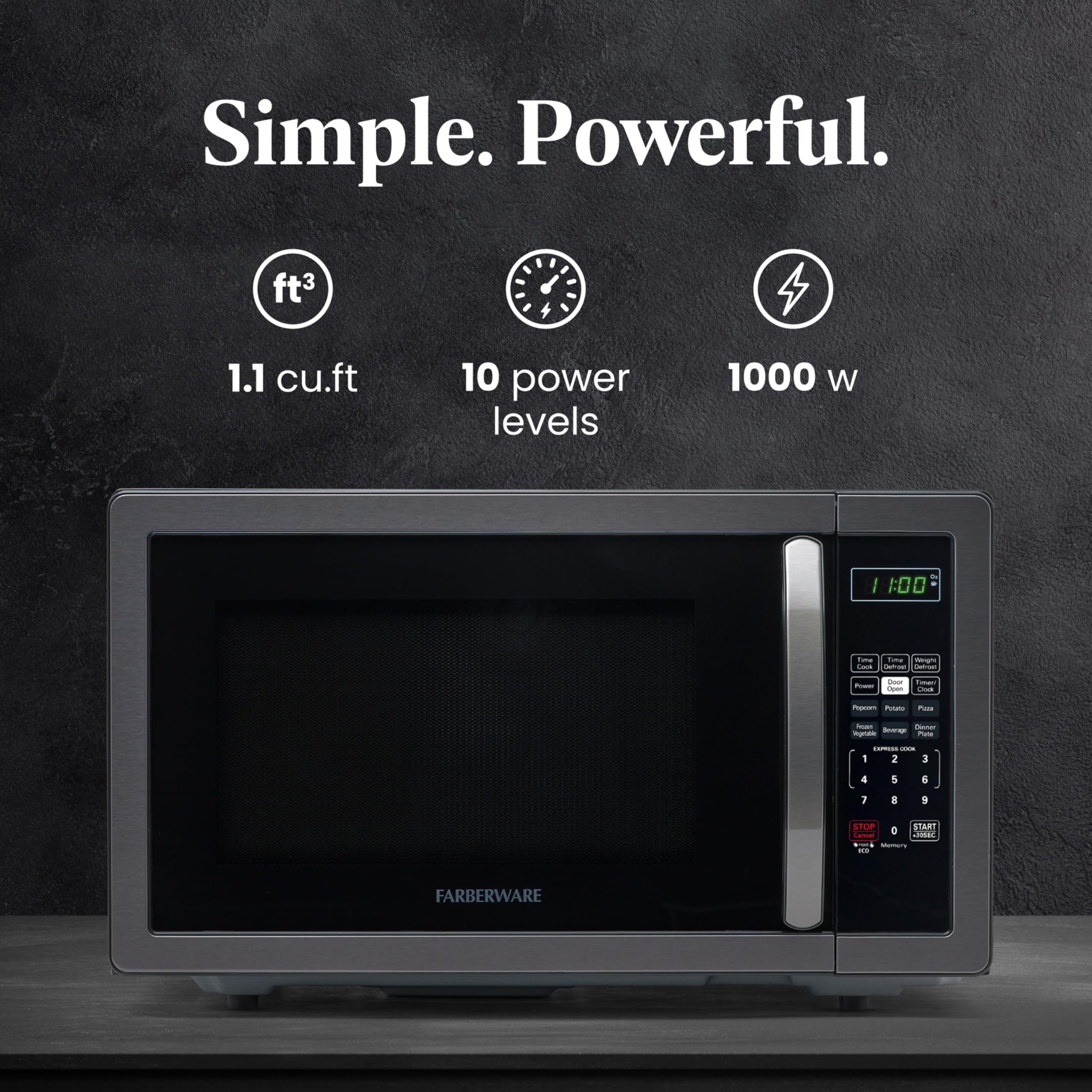 PERFECT SIZE: Measuring 1.1 cu ft, this microwave is the ideal small-space solution that offers full-sized cooking in a compact space. It features an easy-to-clean interior and exterior and is perfect for the home or office.