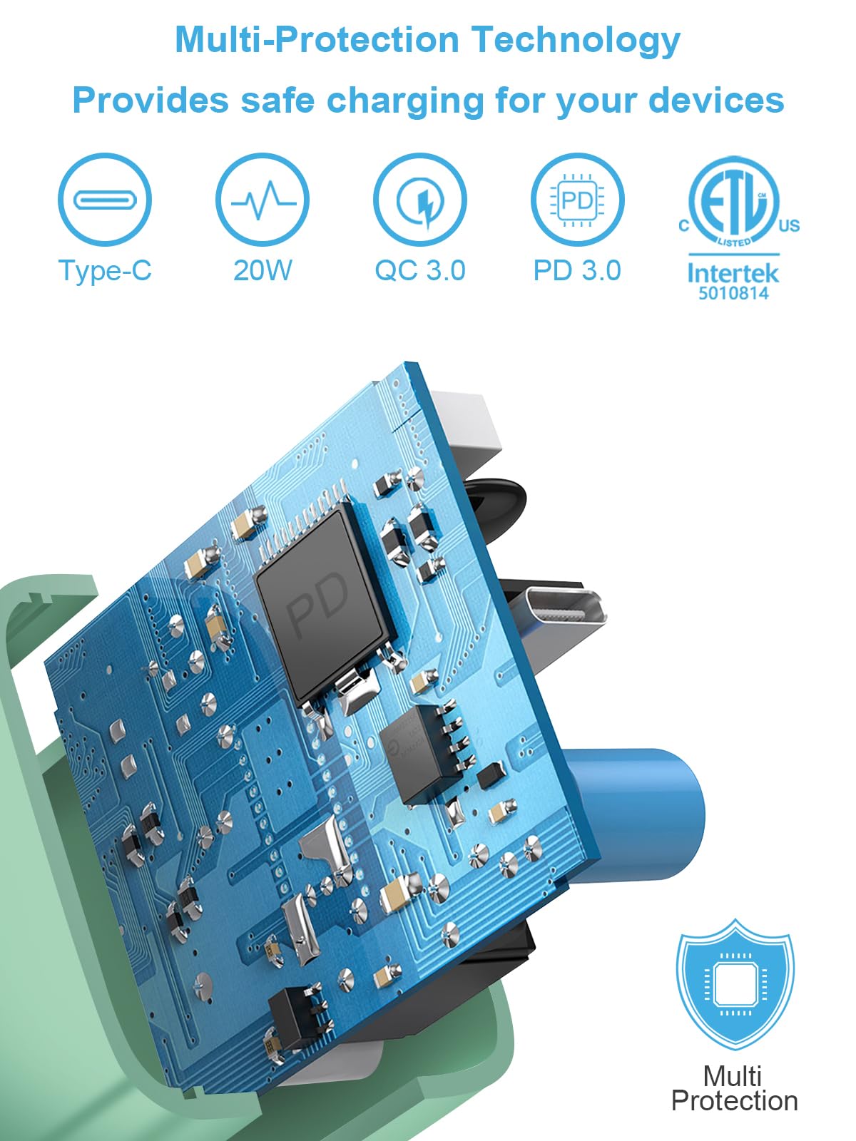 [Unrivaled Speed] iPhone Fast Charger equipped with 20W PD 3.0 USB Type C power delivery wall plug, PD 3.0 Quick-Charge USB C port provides Max 20W output power, charge your device up to 3x faster than original 5W charger,charging your i Phone 14 up to 50% in just 30 minutes, saving over 1.5hrs for you