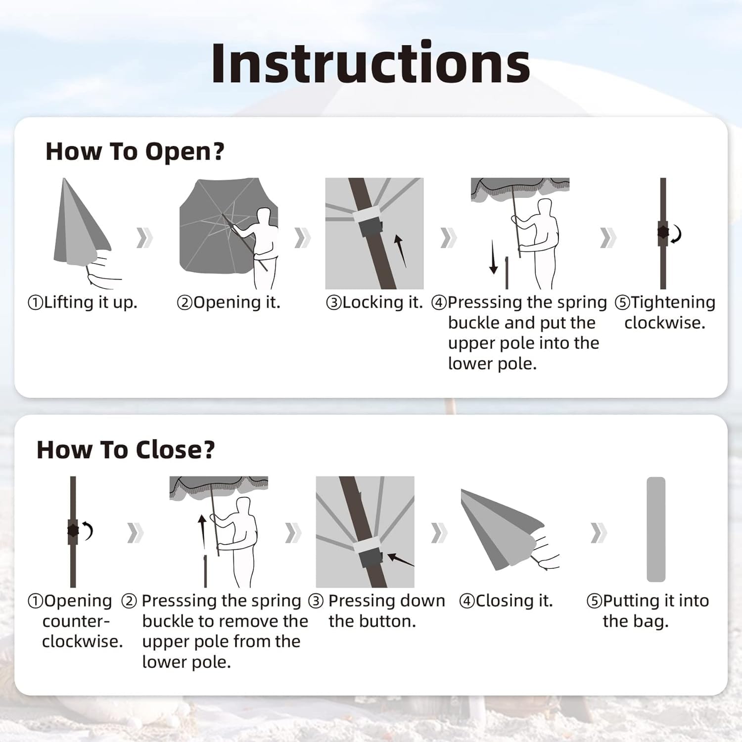 1.26/1.38'' steel pole and 8 steel ribs provide elegance and superior strength support-Allow the umbrella stability in windy conditions
