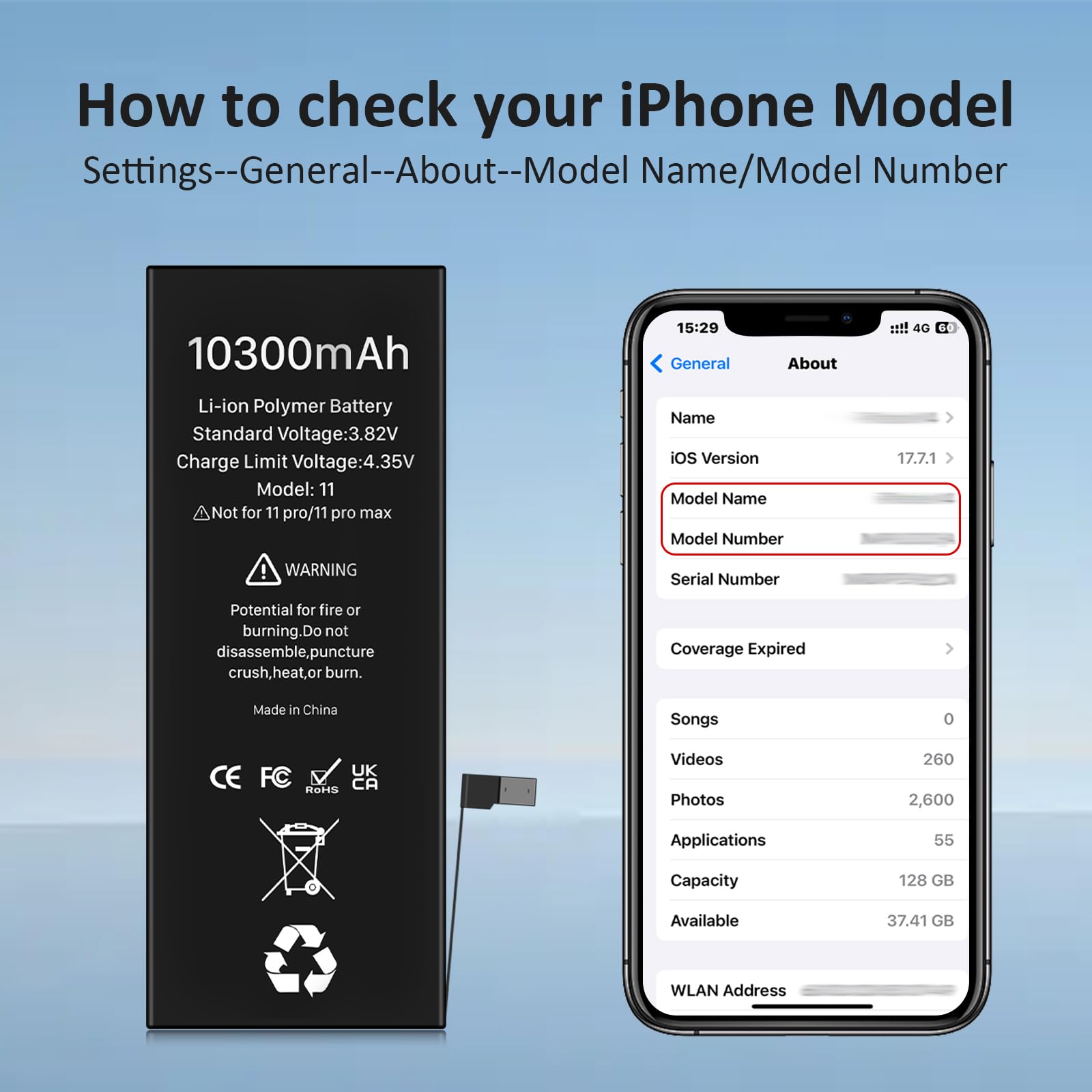 (Compatibility) - Our battery compatible with iPhone 11, A2111, A2223, A2221 only. Please double check your phone model before place the order.