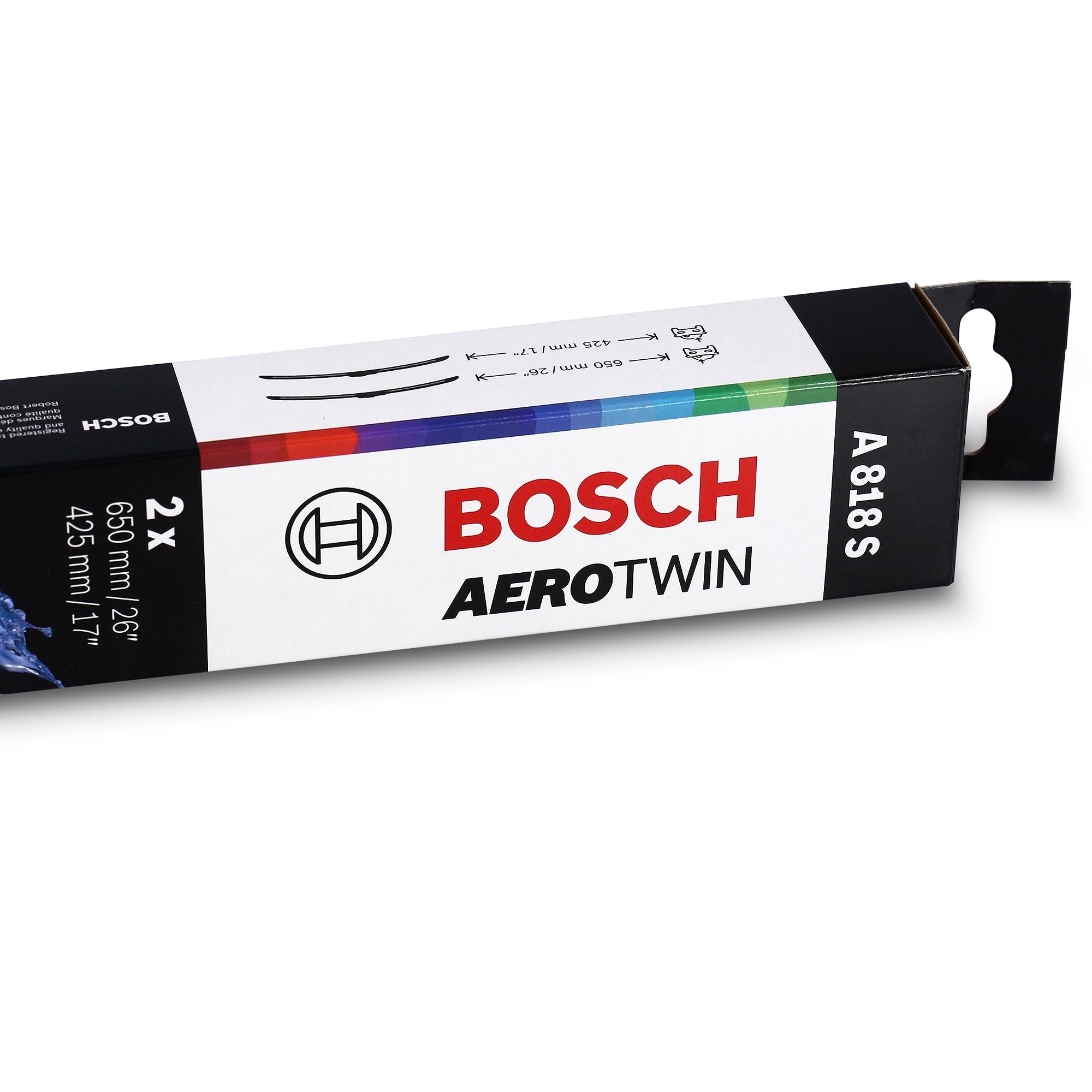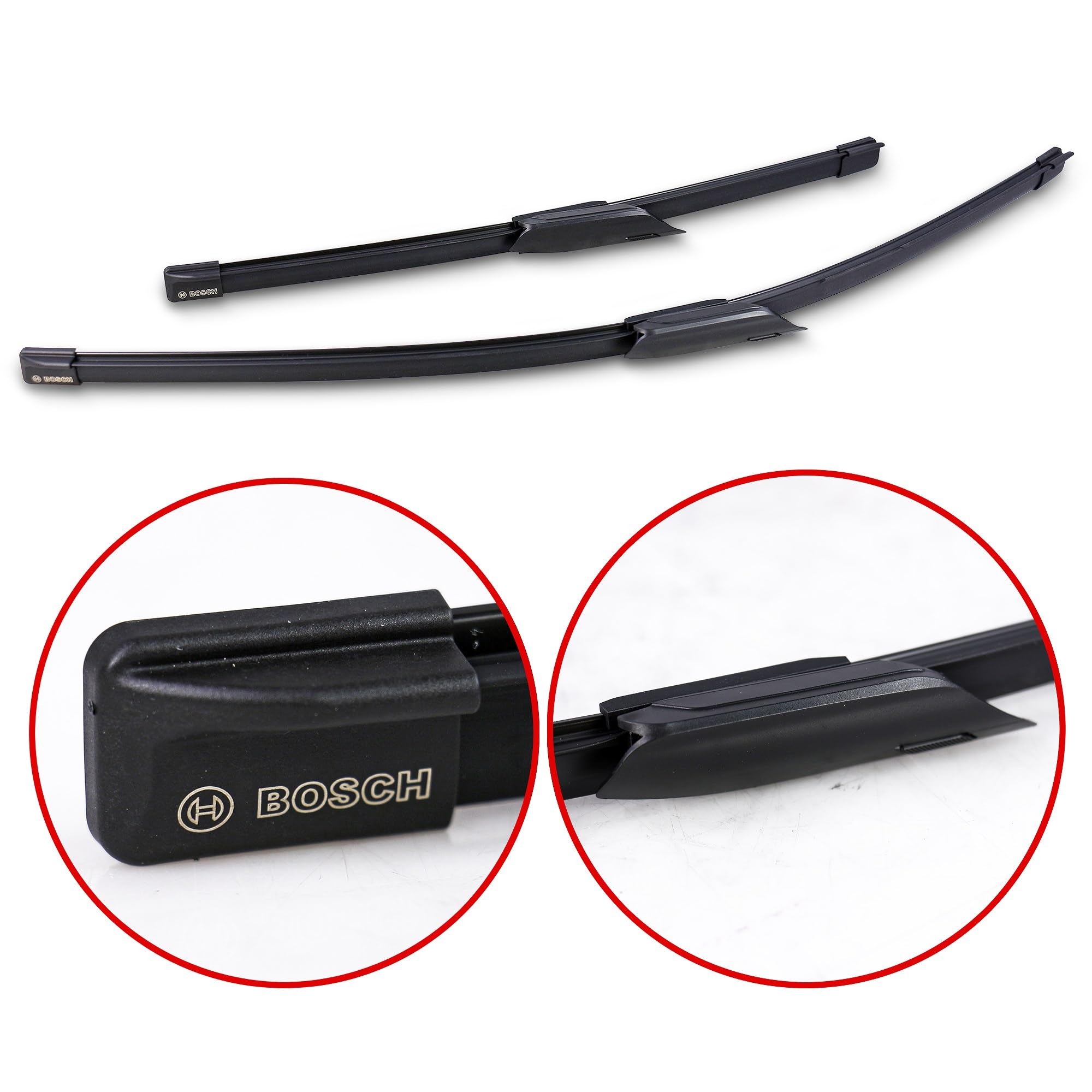 Bosch AeroTwin's patented beam design contains no metal or plastic brackets, joints or hinges, offering an ideal technology upgrade for vehicles originally fitted with conventional wiper blades. The specially blended dual rubber compound with graphite coating removes even the smallest traces of water for exceptional all-weather visibility and smooth, quiet operation. Specific beam curvature for OE specialty wiper arm types, coupled with dual precision-tensioned steel springs, ensures uniform pressure along the entire blade length for crystal clear visibility. Built-in asymmetrical wind spoiler uses air flow to increase blade-to-windshield contact - for consistent performance at highway speeds. Wind spoiler also serves to protect the tension springs from damage by severe weather elements for increased durability and long life. Pre-assembled OE style adapter provides OE fit and function for simple, easy installation on specific vehicles. Set of 2. Note: AeroTwin wiper blades are designed to fit vehicles with specific wiper arm connnection types - they are not universal fit wiper blades. Please verify specific vehicle fitment details with fit checker above.