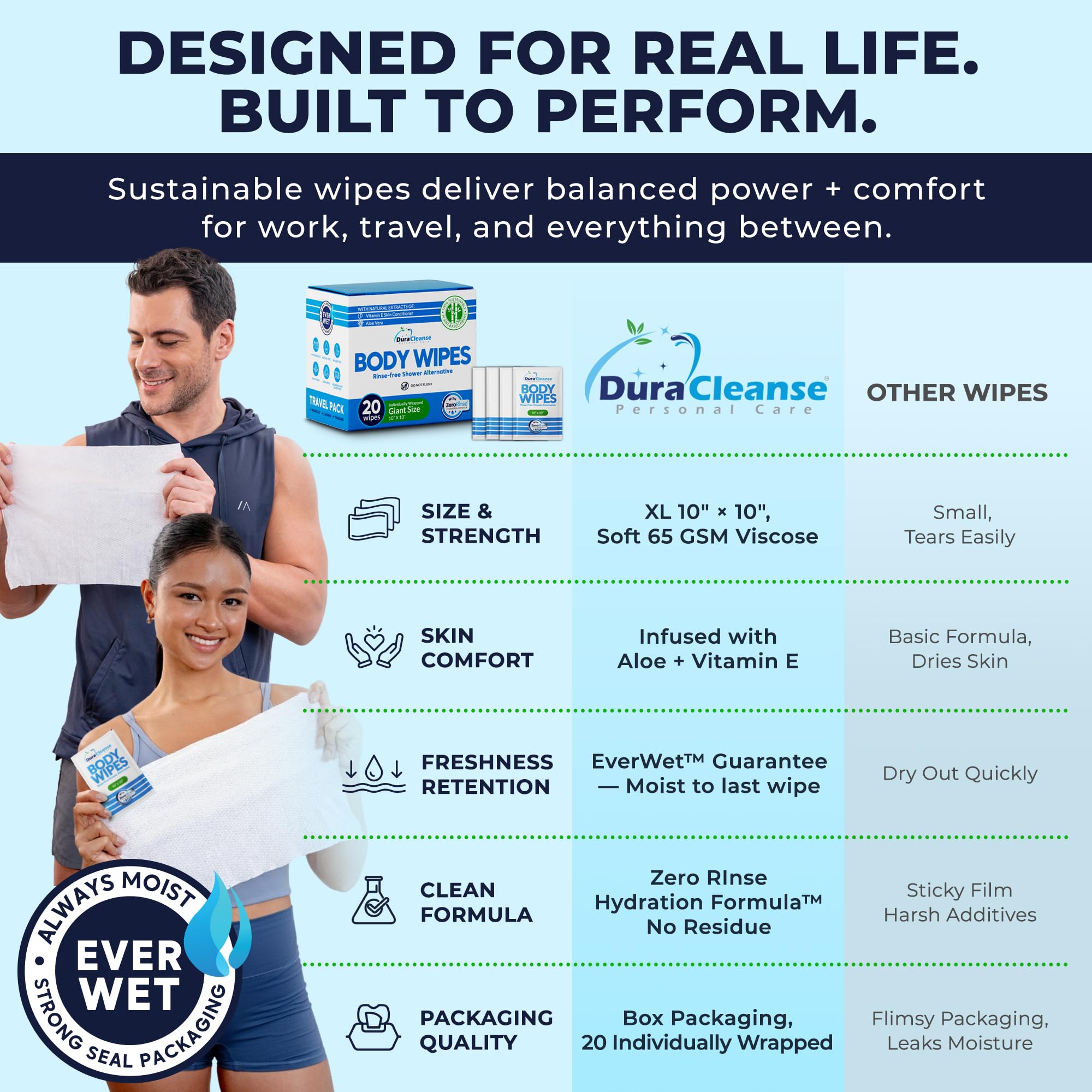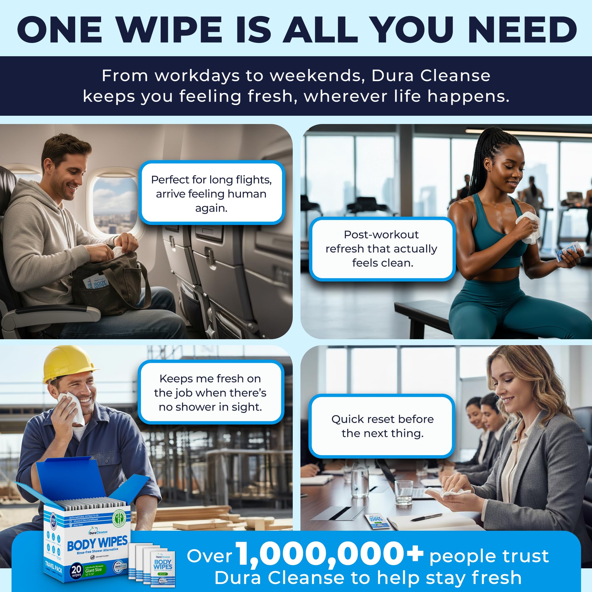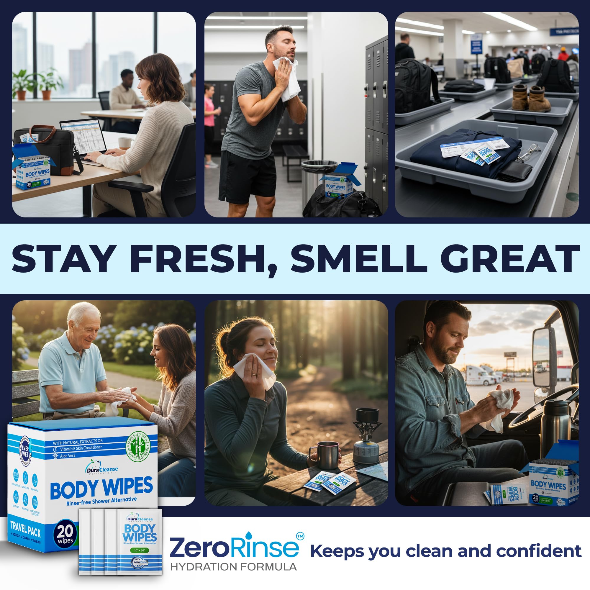 Travel-Ready Pack: 20 individually wrapped wipes for easy carrying in bags, backpacks, and emergency kits - use for travel essentials, after workouts, festivals, and road trips.