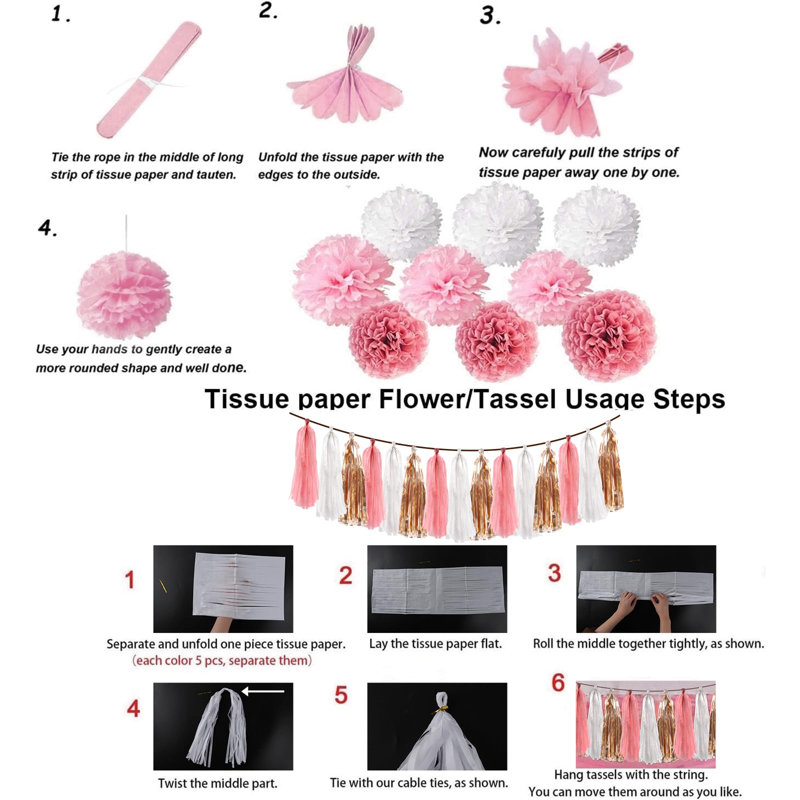EASY TO USE: No More Misspelled Happy Birthday Banner! Unlike many party decorations kit in the market, our circle dots paper garland and the "happy birthday" banner are all assembled, just open the package and hang them. The paper Pompoms and tassel garland come with clear and convenient instructions. Just enjoy the happy family craft Time with no hassle!