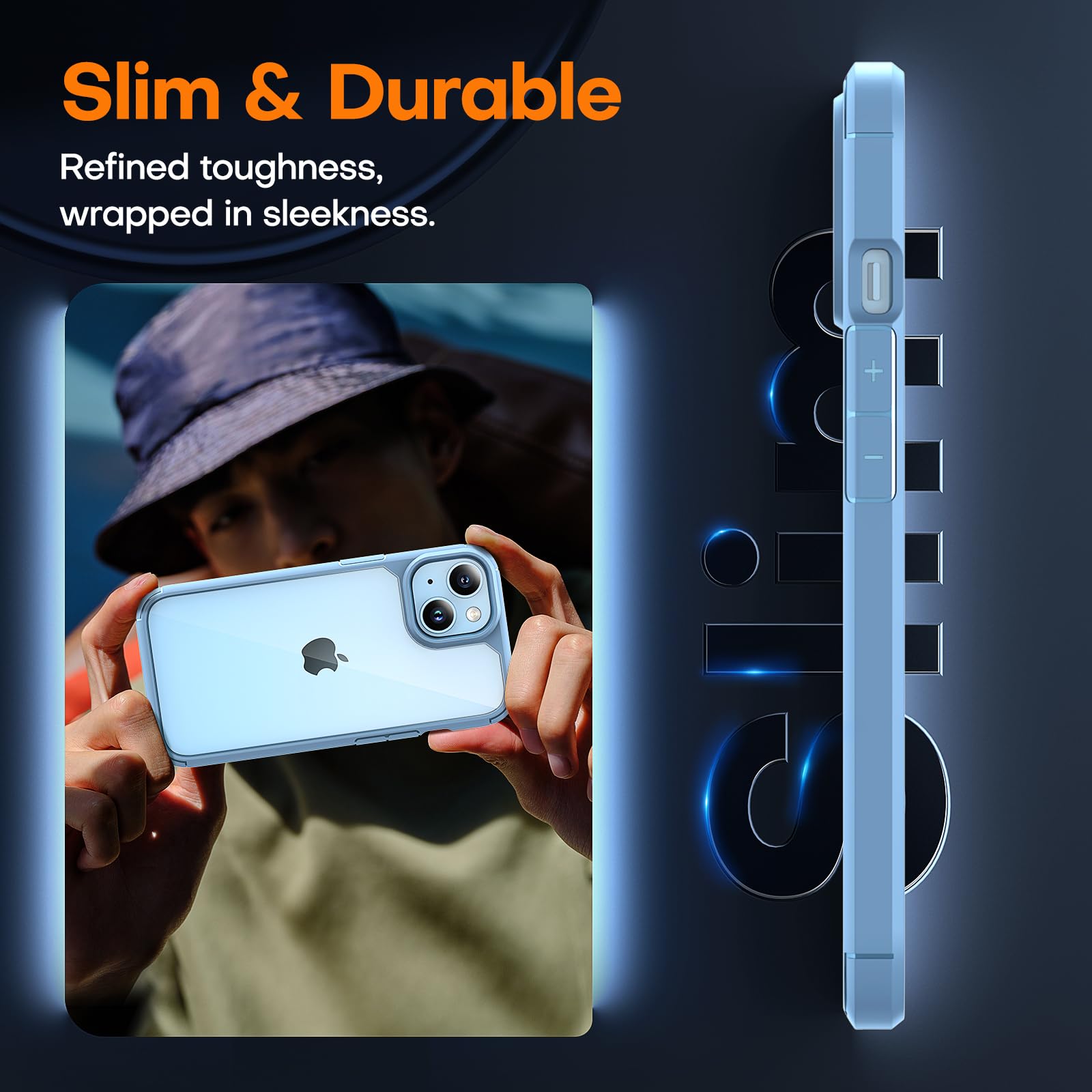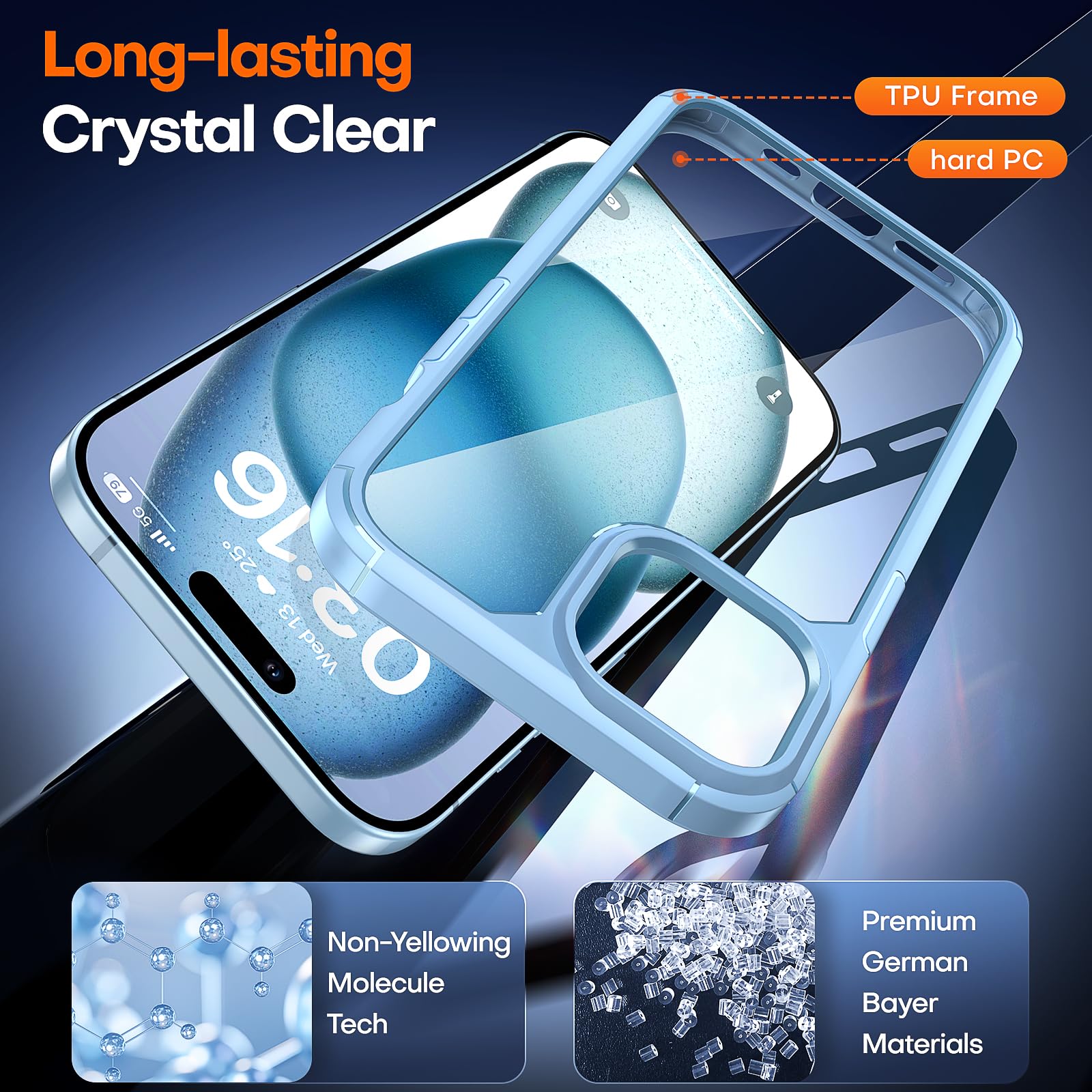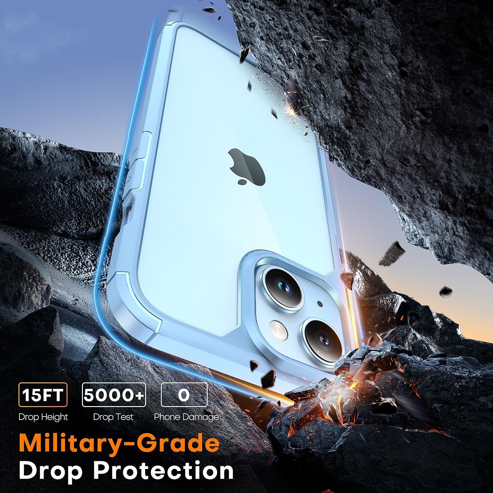 【Shockproof Design】: This iPhone 15 plus phone case devised with meticulous precision combines a soft-frame and hard PC back cover with built-in air cushion anti-fall construction, it deftly absorbs shocks, effectively shielding your device from falls of up to 12 feet