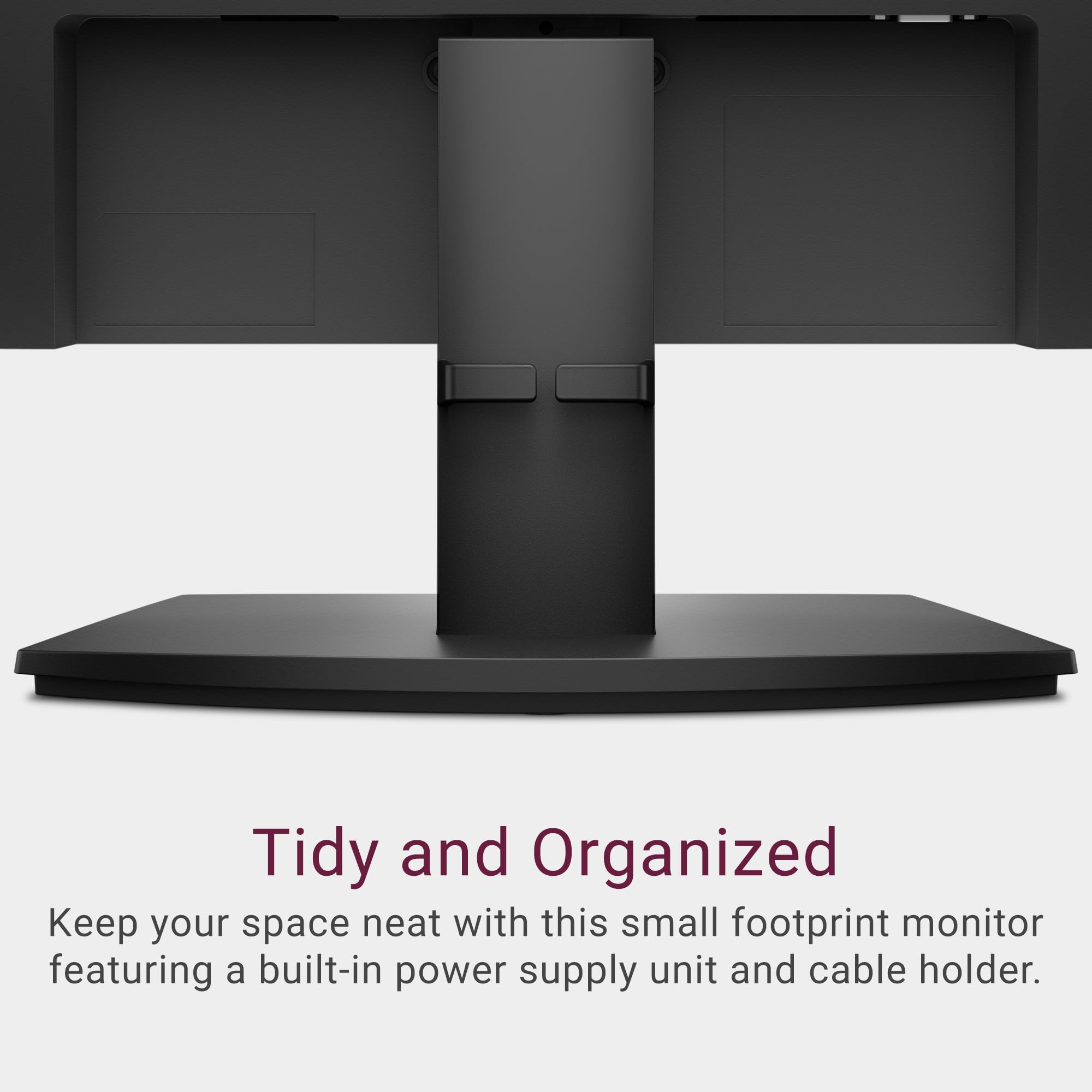 Tidy and organized: Keep your space neat with this small footprint monitor featuring a built-in power supply unit and cable holder.
