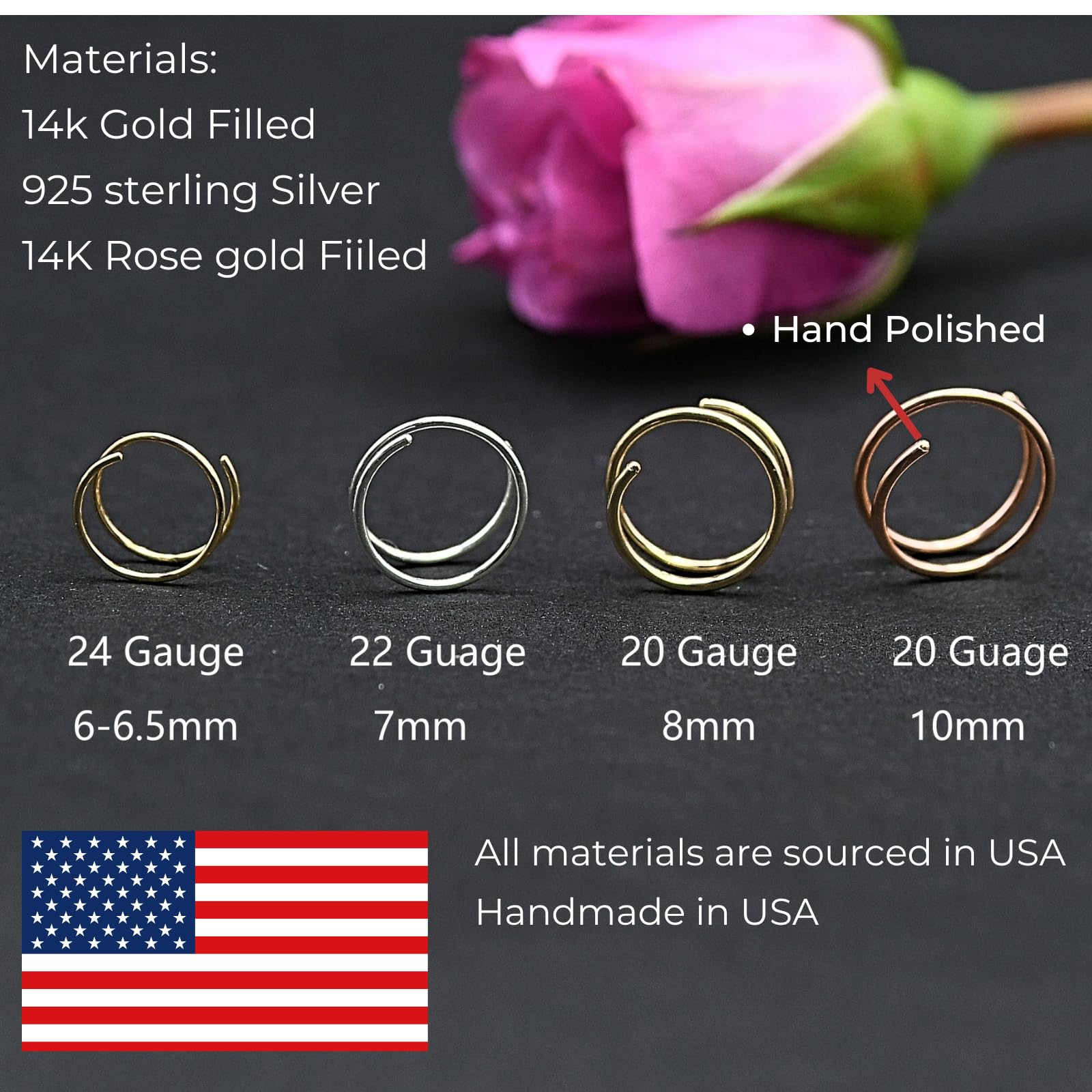 [Double Nose Ring for Single Piercing]: Our 6mm double nose ring hoop is made of 925 sterling silver or 14k gold filled, which are hypoallergenic, nickel-free and lead-free, safe for sensitive skin. Unique nose piercings jewelry for just one nose hole.