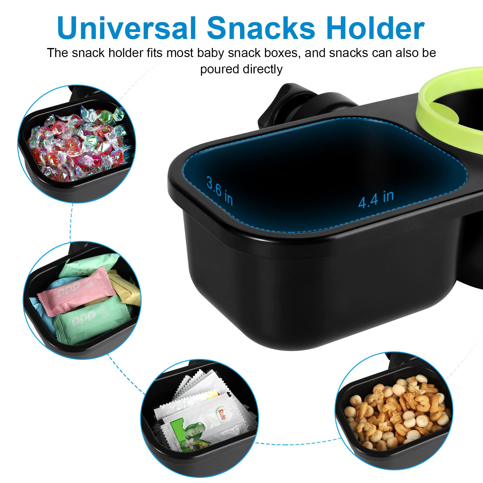 The 2 in 1 multifunctional holder includes a snack catcher and drink holder for snacks on the go. Ideal for mom and baby.