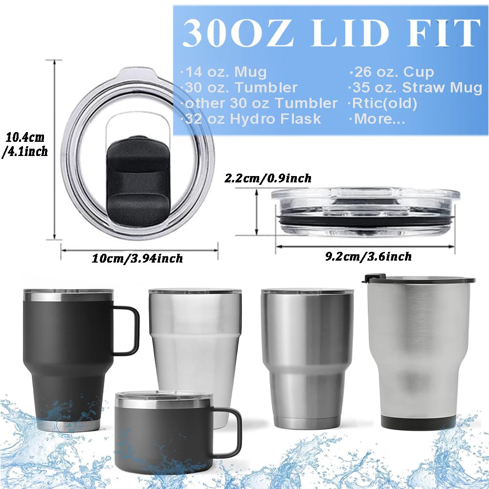 【Well Fit】The 30 oz replacement tumbler lid replacement with 3.94in inner dameter and 4.1in outside diameter, fits perfectly and works well with the yeti tumbler of 30 & 32 oz Yeti Rambler,14 oz Mug and 35 oz Straw Mug, Old Style and most other glass or mug designs, compatible with YETI rambler, Ozark Trail tumbler, Old Style tumbler or other mugs and 30oz tumblers.(Tips: This lid is not compatible with rambler bottles or jugs, or travel mugs with the stronghold lid.)