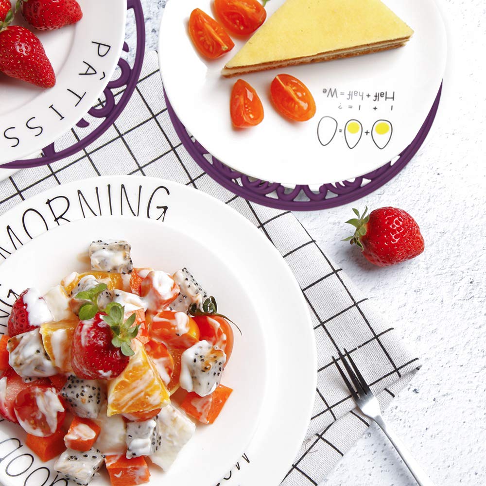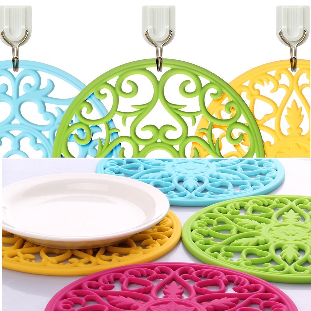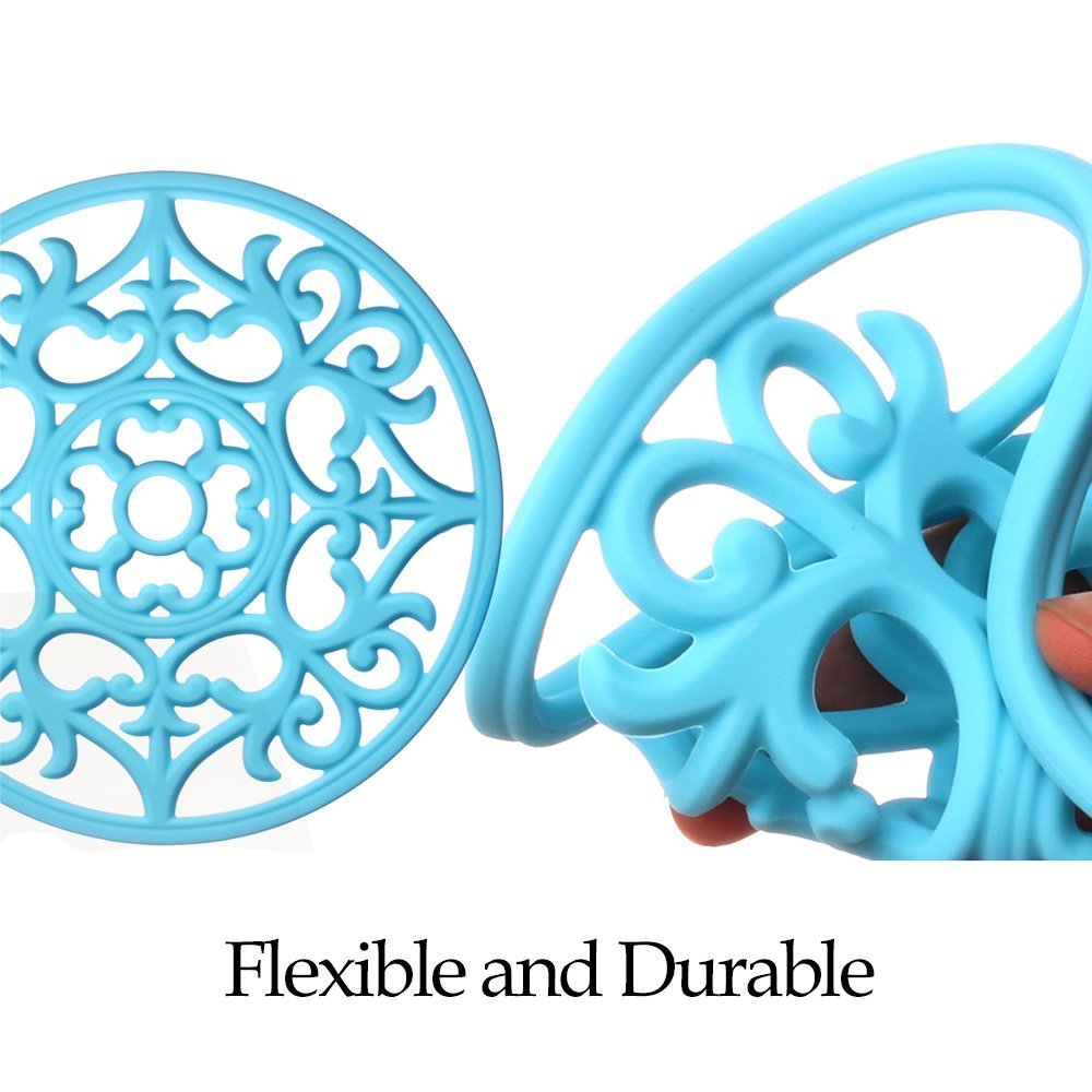 MUTI-USE TRIVET: The soft and flexible silicone trivets can be used as a trivet to protect your kitchen surface from all scalding dishware. The unique yet practical and durable trivets are also suitable for kitchen mats, table mats, bowl mats, dish mats and pitcher coasters