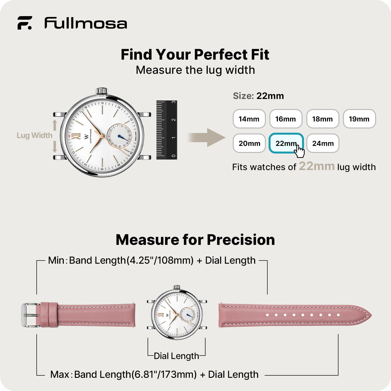 [Adjustable and Perfect Fit] Designed to fit almost any wrist.These 22mm watch bands fit wrist (4.25"+dial length)--(6.81"+dial length).11 (22mm) precision cut eyelets allow for individualized adjustment to achieve the perfect fit.Before you order, measure the breadth of your watch lugs.