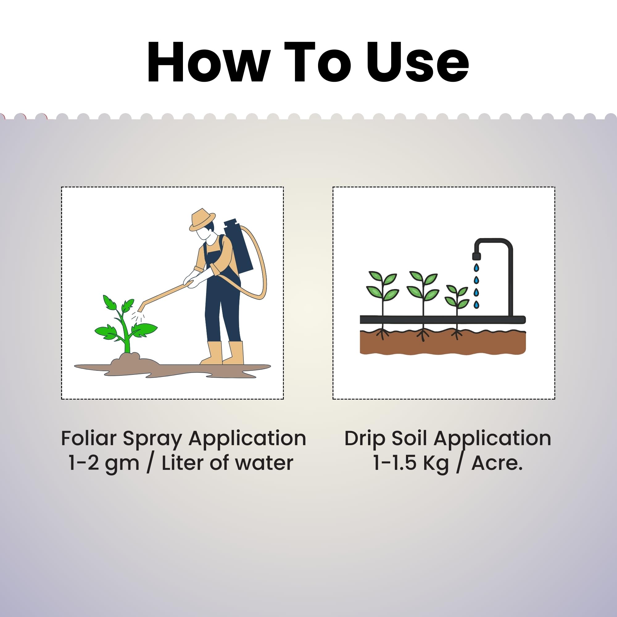 Dose: Foliar Spray/ Soil Drenching/ Drip - Mix 3 to 4 grams per liter of water.