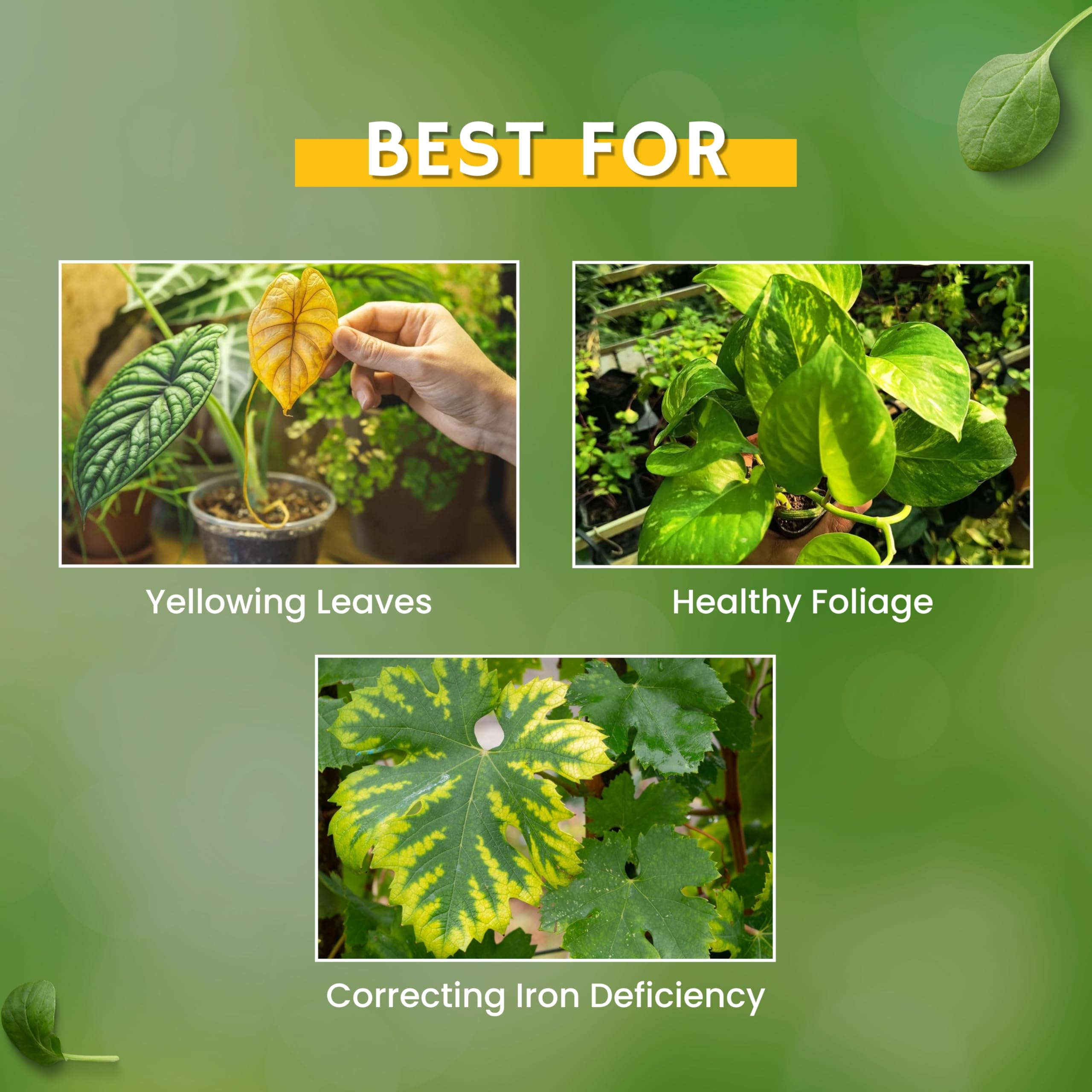 It promotes formation of chlorophyll. It acts as an oxygen carrier. It helps reactions involving cell division & growth